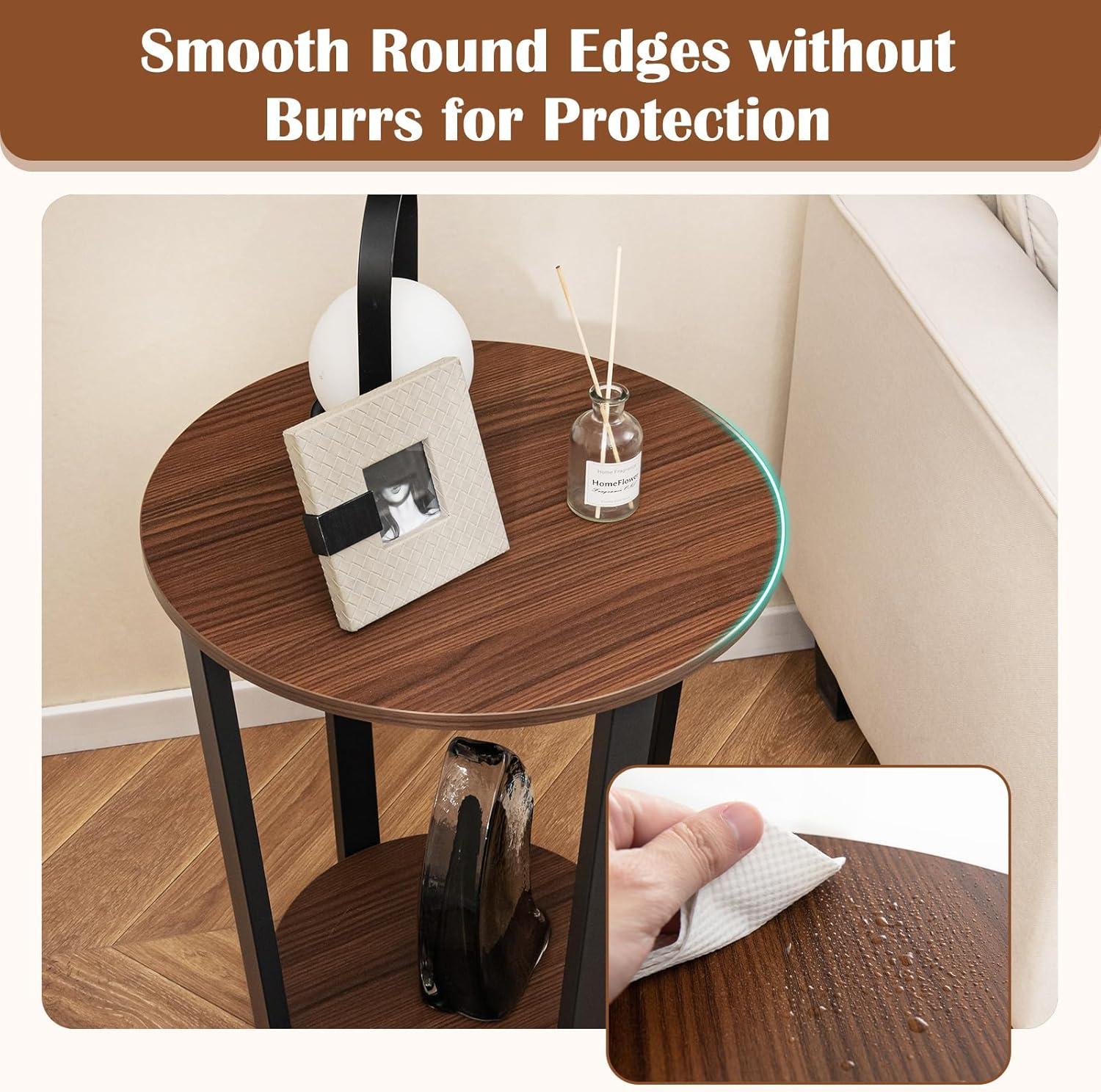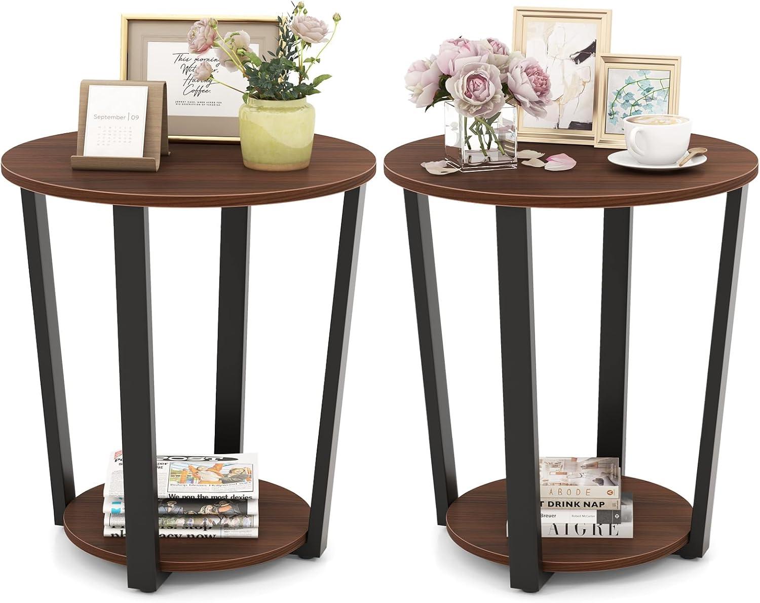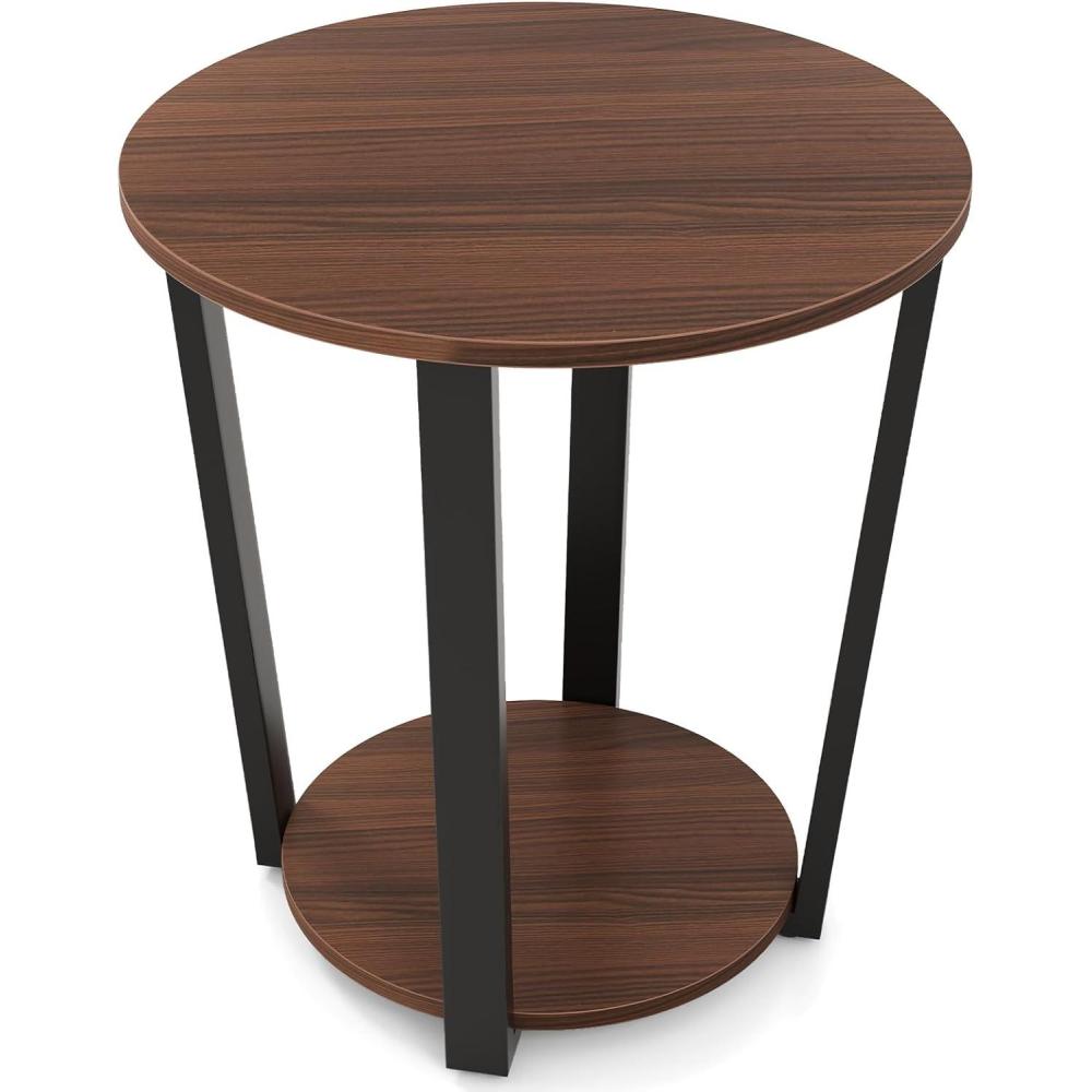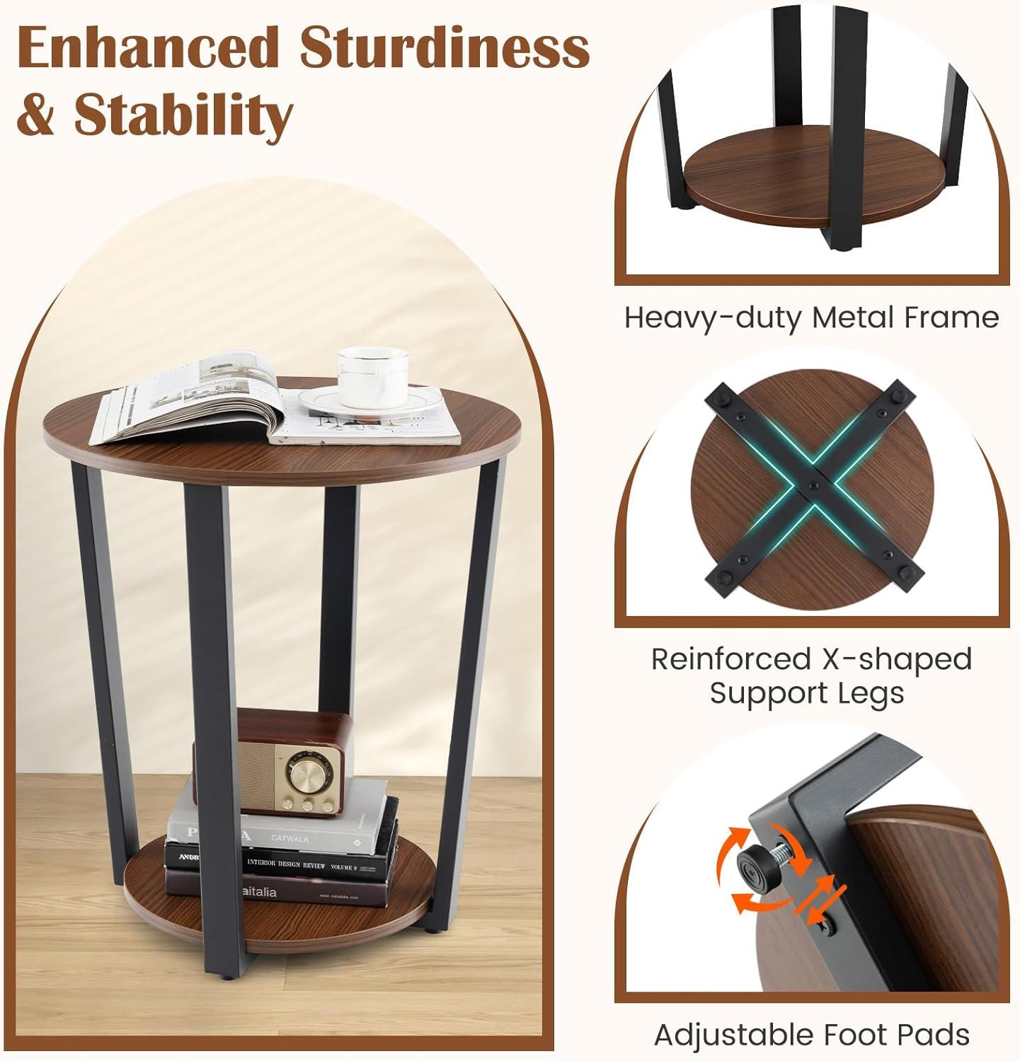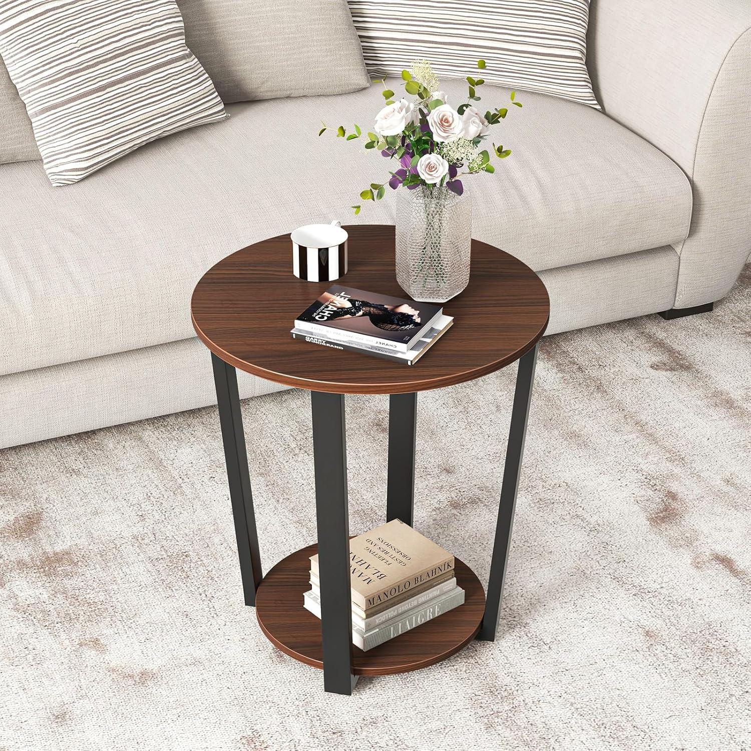 This 2-tier accent side table offers ample storage and display space with its open shelf design. The powder-coated metal tubes are strong enough to support long-term use. What's more, the metal legs are fitted with adjustable foot pads for higher stability. The rustic wood grain matches the matte black metal frame, which will blend into the current furniture in the room. The versatile end table is designed to serve as the perfect complement to your sofa, or as an elegant nightstand beside your bed.