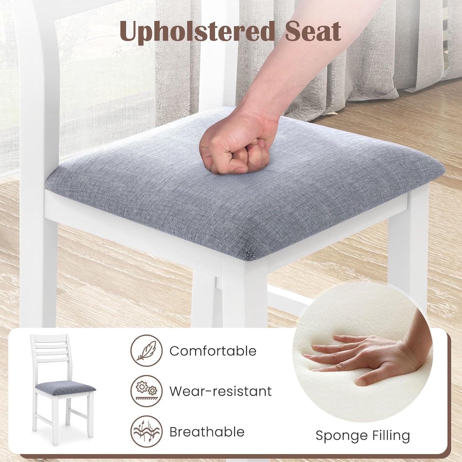 Featuring easy-to-maintain breathable polyester fabric coverings on the seat, the wooden kitchen side chairs exudes luxury. The soft sponge filling and high backrest provide optimal support and comfort, allowing you and your guests to enjoy extended meals without discomfort. Crafted with a sturdy rubber wood frame, these kitchen chairs are engineered to withstand daily use and offer lasting stability. Additionally, you can embrace the charm of farmhouse aesthetics with our dining chairs that feature elegant color scheme and timeless appearance.