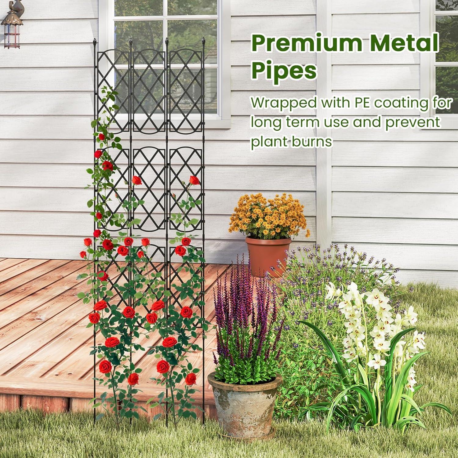 Giantex Set of 2 Garden Trellis, Outdoor Plant Support Frame w/Adjustable Shapes, Ground Stakes, Rustproof PE Coating Pipes, Privacy Screen Trellis Metal Flower Rose Stand for Garden, Patio, Backyard(2)