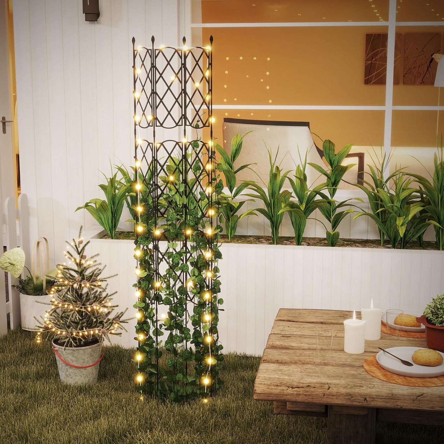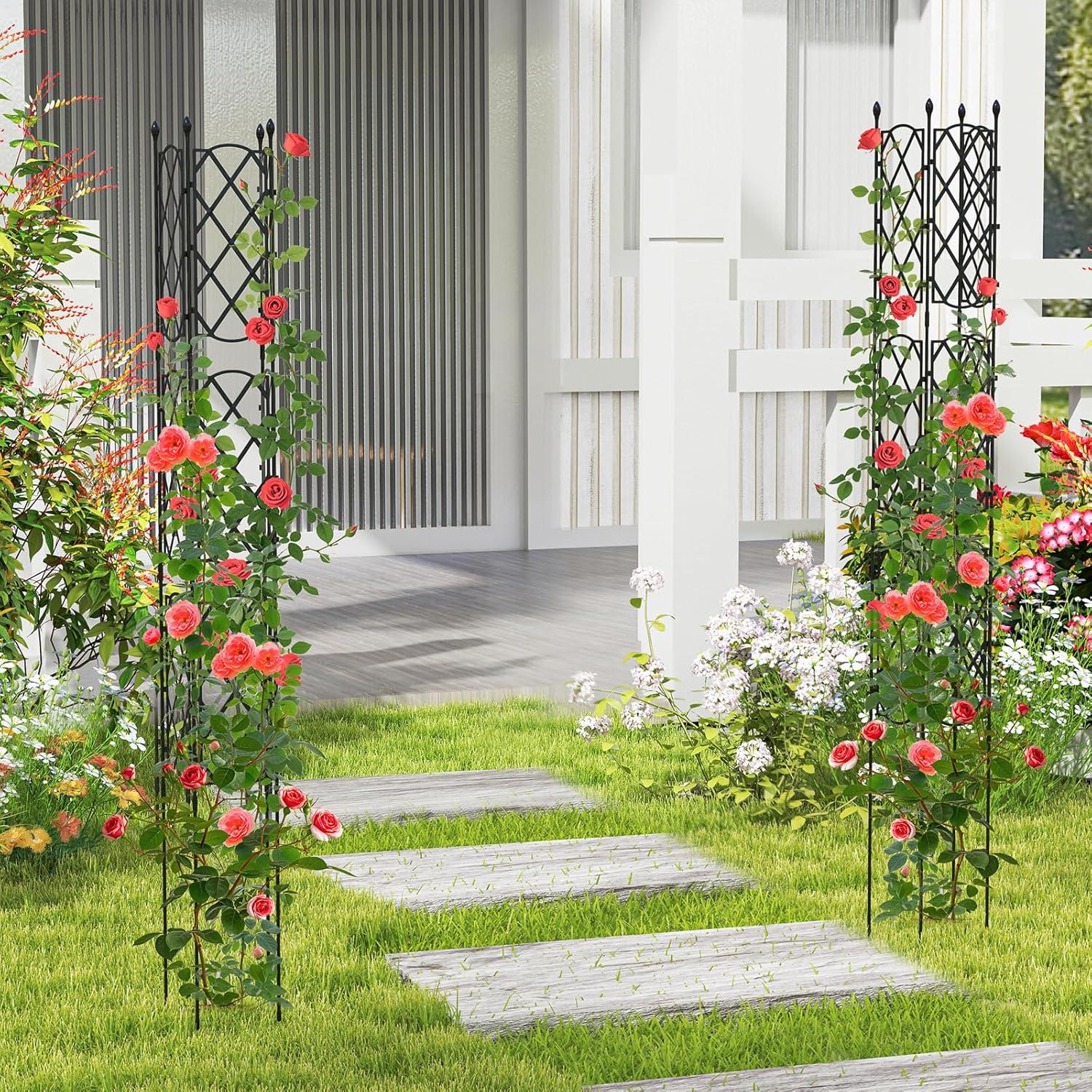 [Premium Metal Pipes]: Constructed with sturdy metal pipes, this outdoor trellis ensures long-term durability. Besides, the pipes are wrapped with PE coating resistance to rust and plant burns, providing a safe surface for your plants to climb.