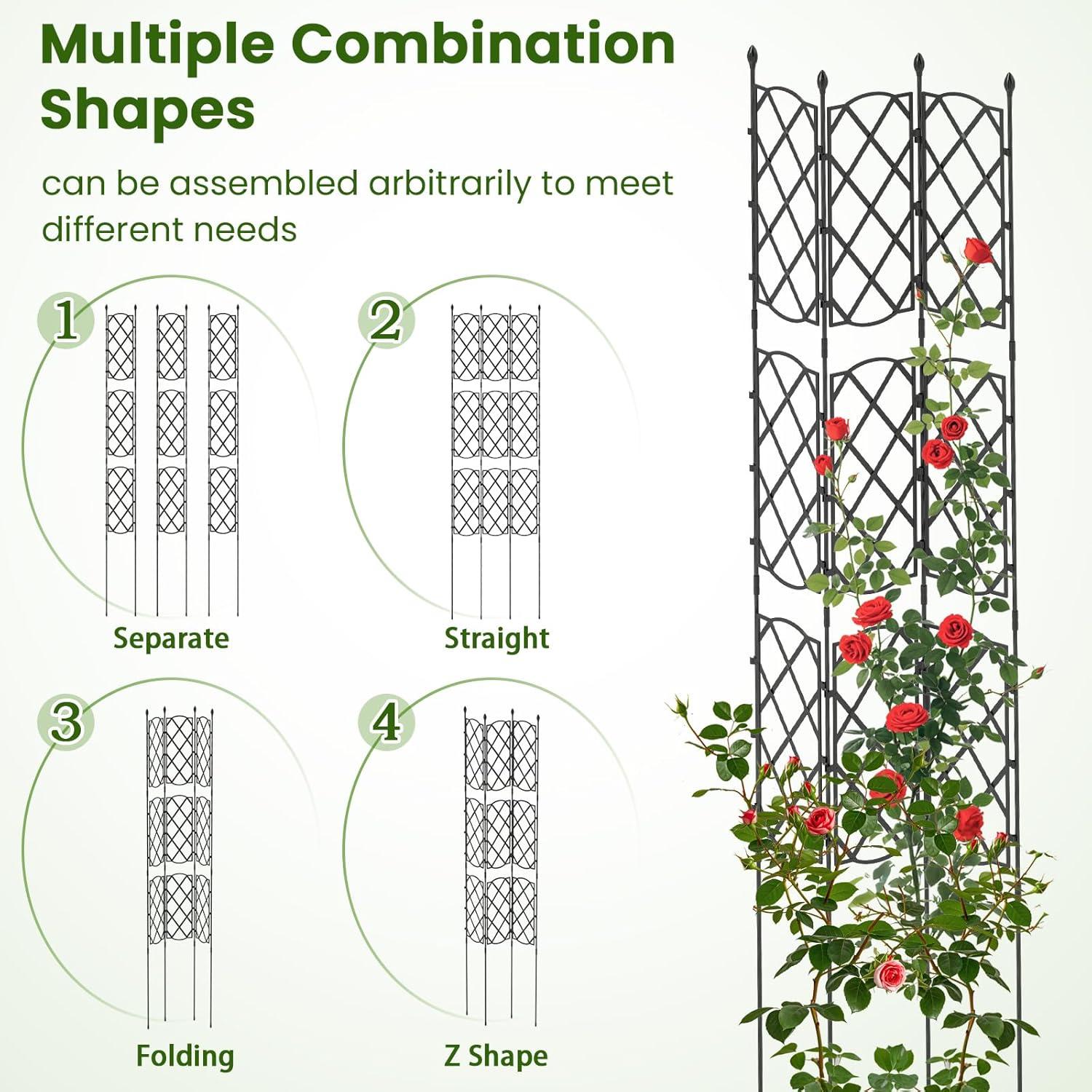 [Multiple Combination Shapes]: This garden trellis offers endless configuration possibilities, it can be assembled arbitrarily to meet different needs: separate in 3 parts, form a Z shape, or folding the panels as a U shaped frame. It allows you to create a customized look that fit your outdoor space perfectly.