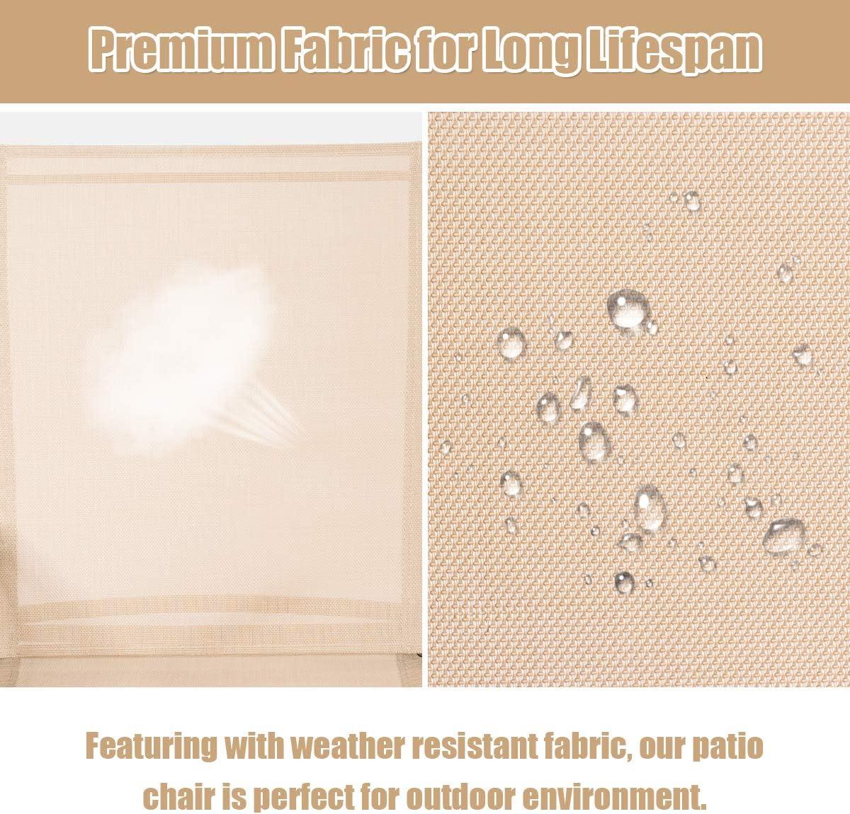 Sturdy & Stable Construction: Crafted with a powder coated steel frame, our patio chair is sturdy and solid which has a long lifespan. The premium fabric of seat is durable enough to stand the test of time. What’s more, the legs with non-slip foot pads form a triangle with ground, increasing the stability.