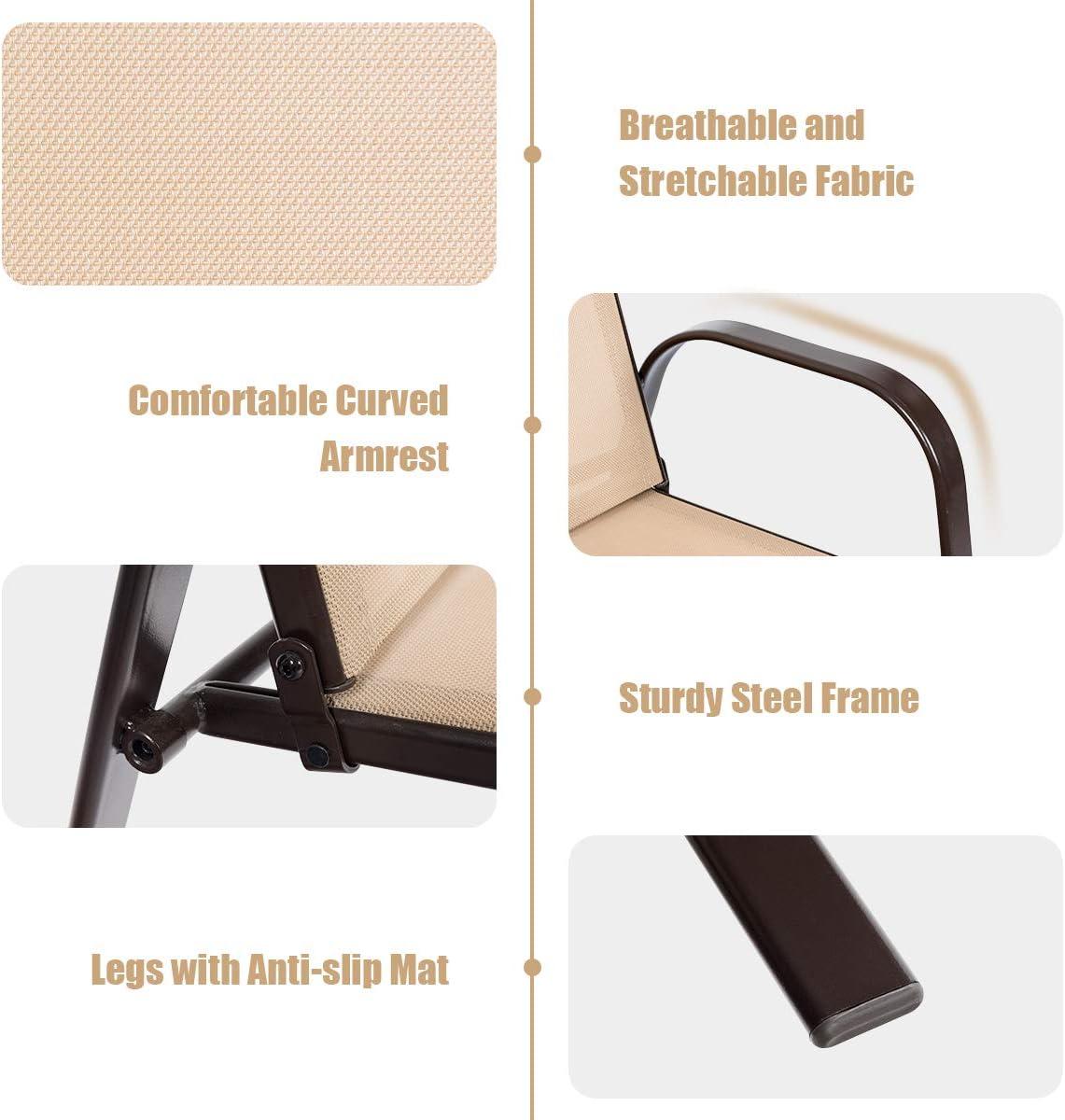 Giantex Set of 2 Patio Chairs, Outdoor Camping Chairs with Breathable Fabric, 2 Piece Garden Chairs with Armrest High Backrest for Garden Patio Pool Beach Yard Space Saving, Black(Brown)