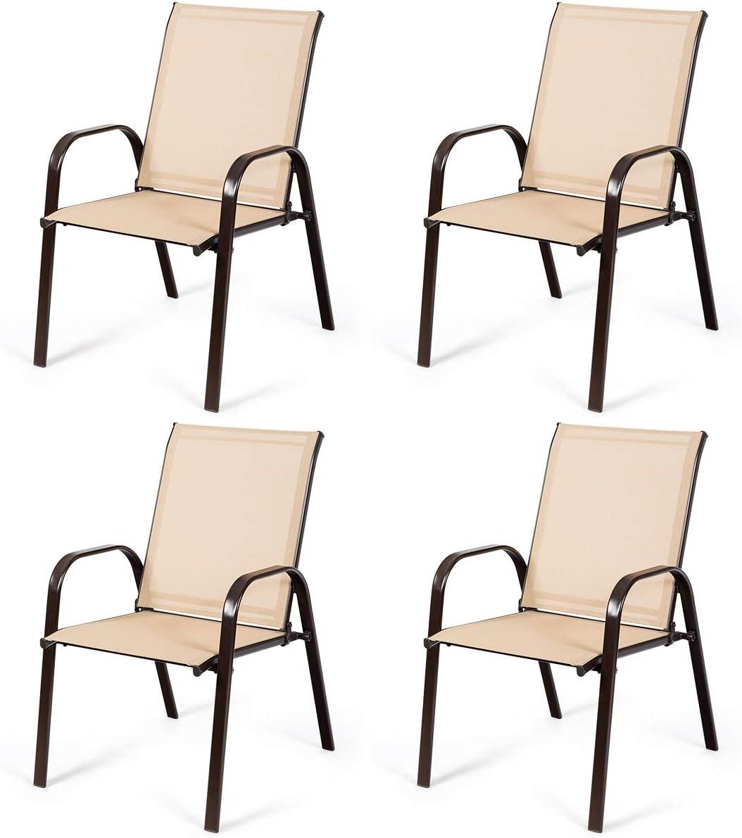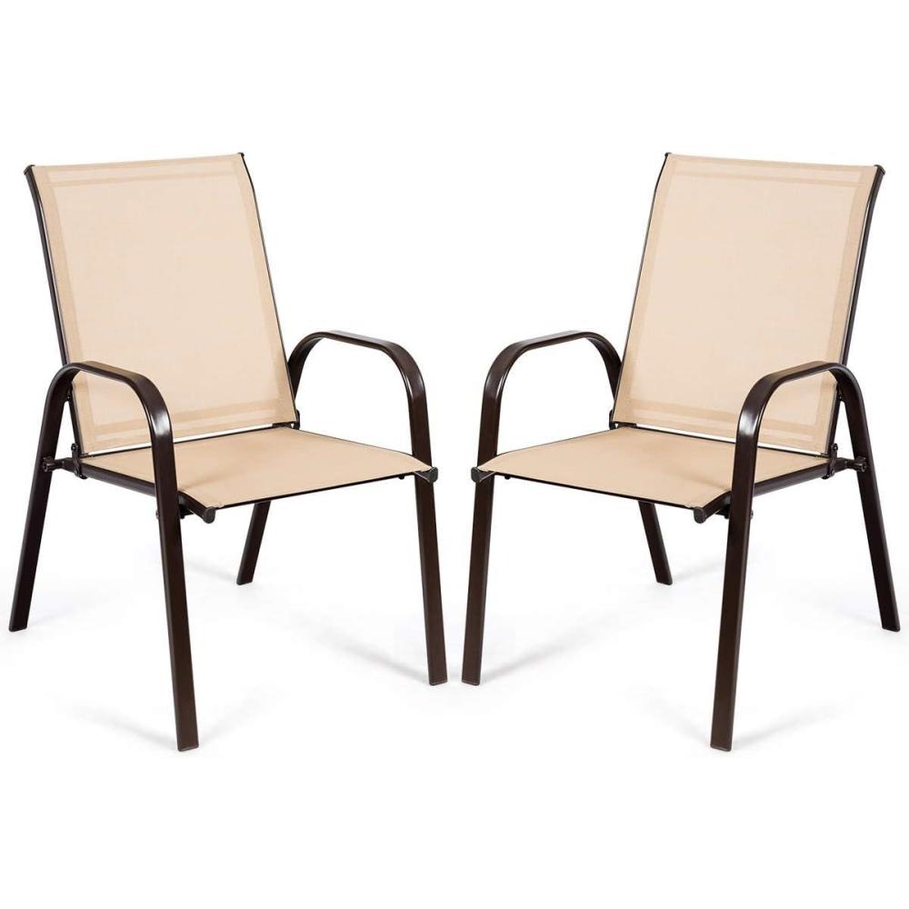 This set of 2 patio chairs combining with practical and modern design is perfect for your outdoor environment. Featuring with solid steel frame with powder-coated finish, this chair has high stability and strong durability. The breathable fabric is durable enough to support large weight capacity and it provides a concise look in any setting. In hot summer days, this chair will provide you with cooler sitting experience with the mesh fabric. Smart space-saving design is convenient for storage when not in use, which won’t take much space. It is perfect for backyard parties, picnics, outings, or relaxing on a porch.