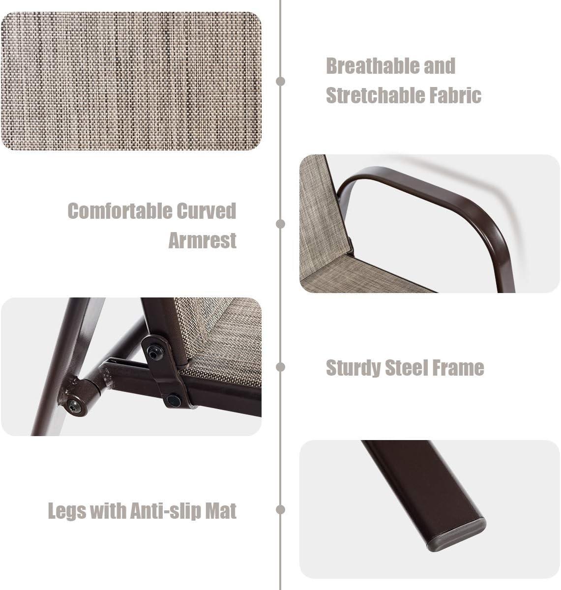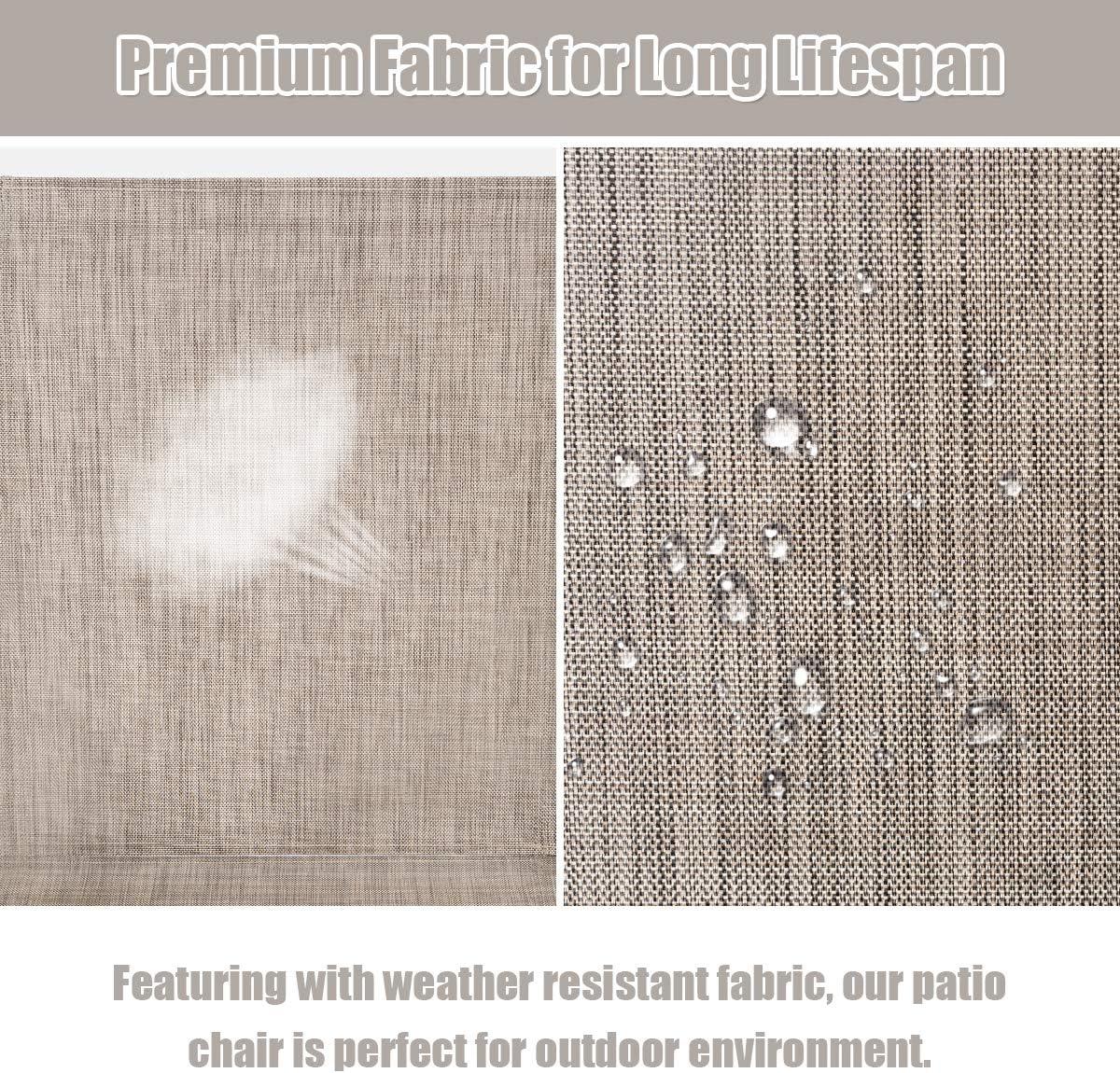 Sturdy & Stable Construction: Crafted with a powder coated steel frame, our patio chair is sturdy and solid which has a long lifespan. The premium fabric of seat is durable enough to stand the test of time. What’s more, the legs with non-slip foot pads form a triangle with ground, increasing the stability.