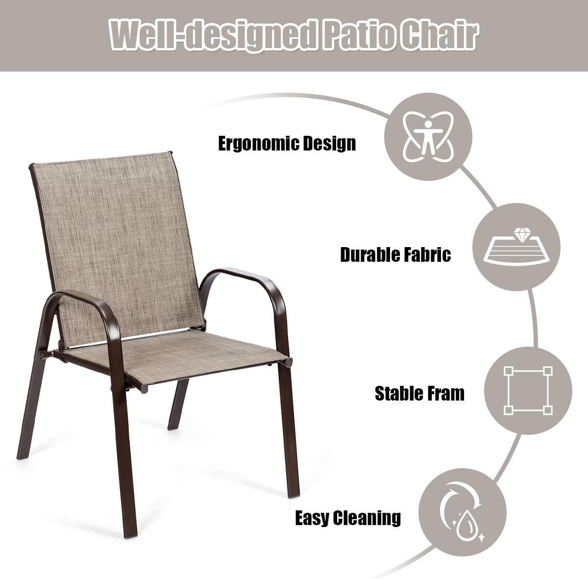 Giantex Set of 2 Patio Chairs, Outdoor Camping Chairs with Breathable Fabric, 2 Piece Garden Chairs with Armrest High Backrest for Garden Patio Pool Beach Yard Space Saving, Black(Coffee)