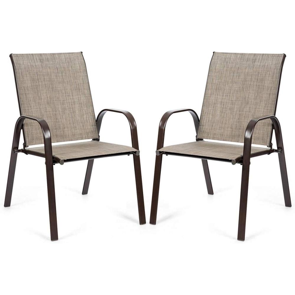 This set of 2 patio chairs combining with practical and modern design is perfect for your outdoor environment. Featuring with solid steel frame with powder-coated finish, this chair has high stability and strong durability. The breathable fabric is durable enough to support large weight capacity and it provides a concise look in any setting. In hot summer days, this chair will provide you with cooler sitting experience with the mesh fabric. Smart space-saving design is convenient for storage when not in use, which won’t take much space. It is perfect for backyard parties, picnics, outings, or relaxing on a porch.