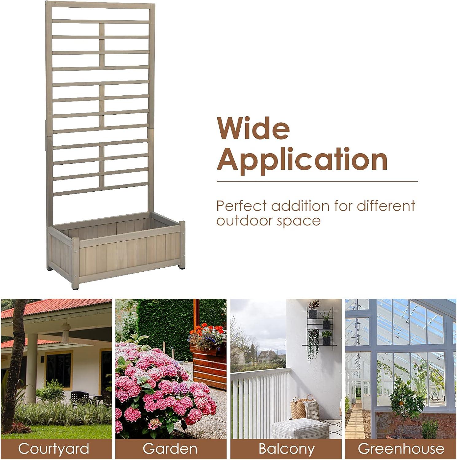 『Trellis Design for Climbing Plants』: The garden box is designed with 68″ height raised trellis to provide a perfect growing environment for climbing plants. Plus, the grid on the back of this planter box can be decorated with various items like photos and LED lights, adding highlight to any area of your house.