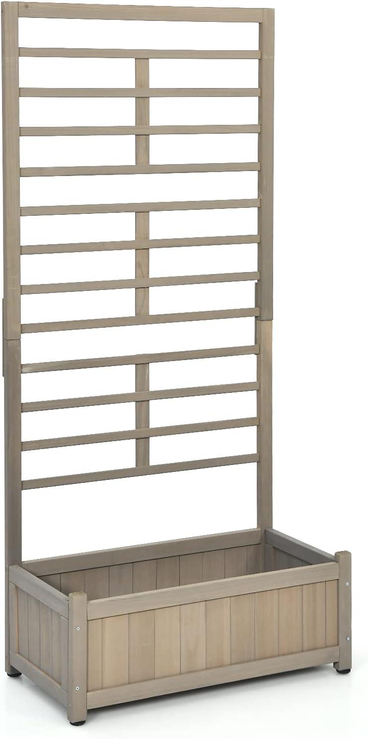 imageGiantex Set of 2 Raised Garden Bed with Trellis Wood Planter Box for Flower Climbing Standing Vertical Indoor Outdoor Plant Container for Garden Balcony Patio Yard Porch 315quotx16quotx68quot1