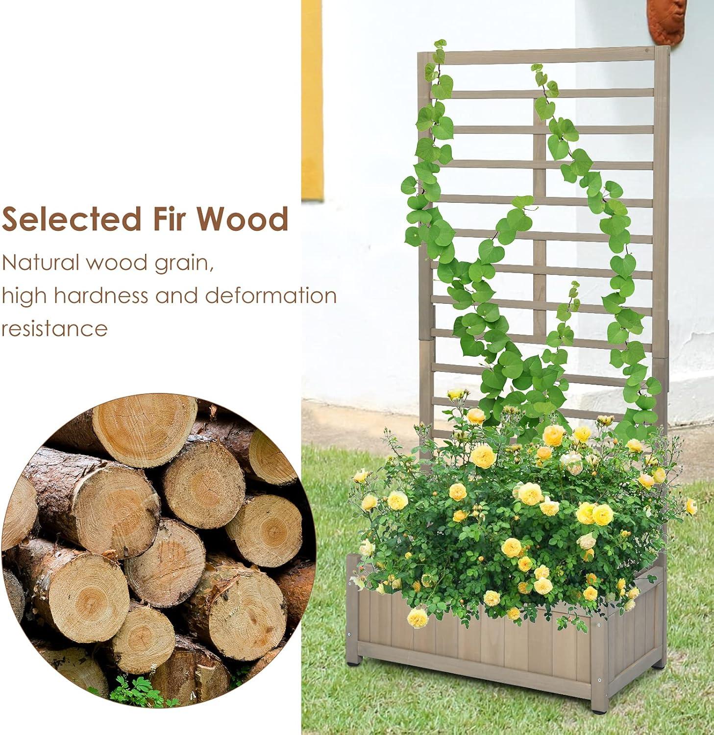 imageGiantex Set of 2 Raised Garden Bed with Trellis Wood Planter Box for Flower Climbing Standing Vertical Indoor Outdoor Plant Container for Garden Balcony Patio Yard Porch 315quotx16quotx68quot2