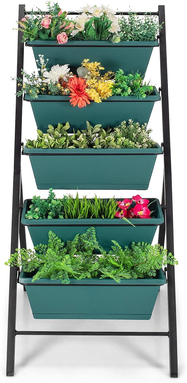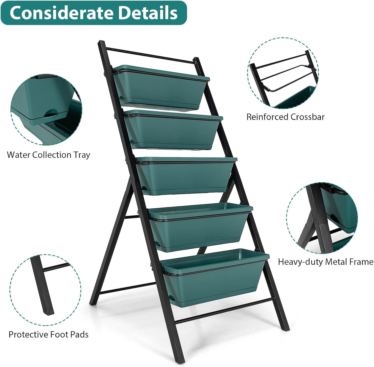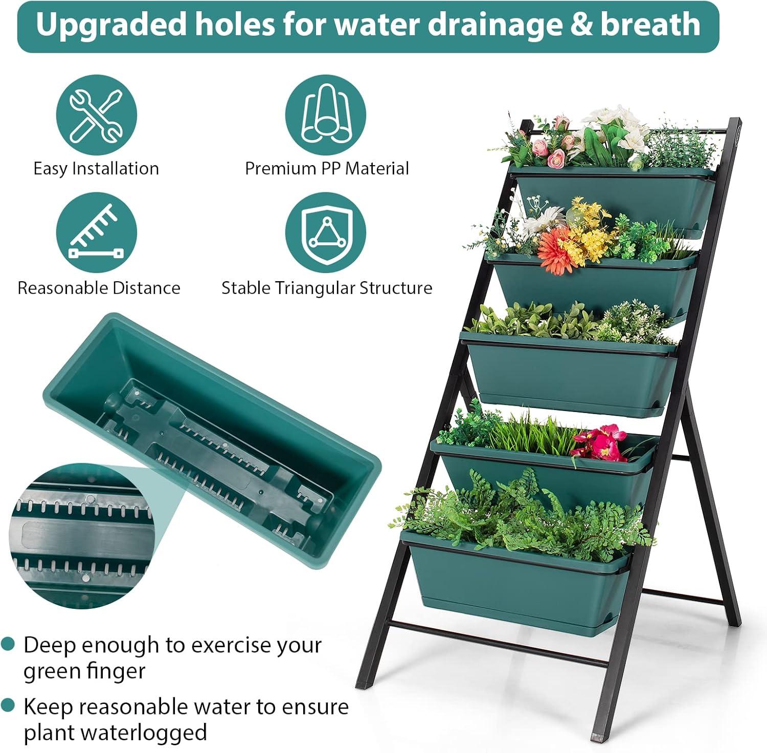 『5 Plant Container Box』: This 5-tier vertical garden is equipped with 5 PP made container boxes, which are durable for long-term use in both outdoor and indoor environment. Each box can hold 0.5 cubic feet volume of soil and its weight should no more than 22lbs. Your plants could have a warm home and grow healthily.