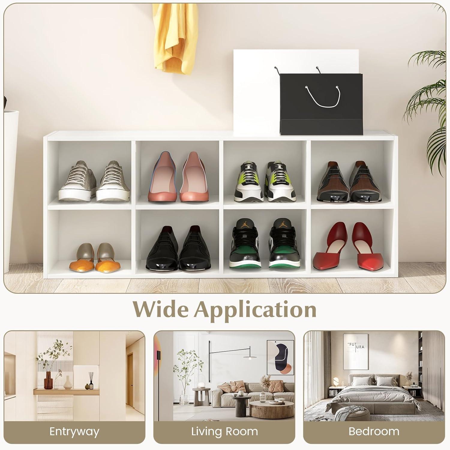 Giantex Shoe Bench 8 Cubes, 40" Entryway Bench with Storage, 8-Cubby Shoe Rack, Shoe Organizer Storage Cabinet for Entryway, Hallway, Mudroom, Living Room, Bedroom, Support up to 500 lbs, White(White)