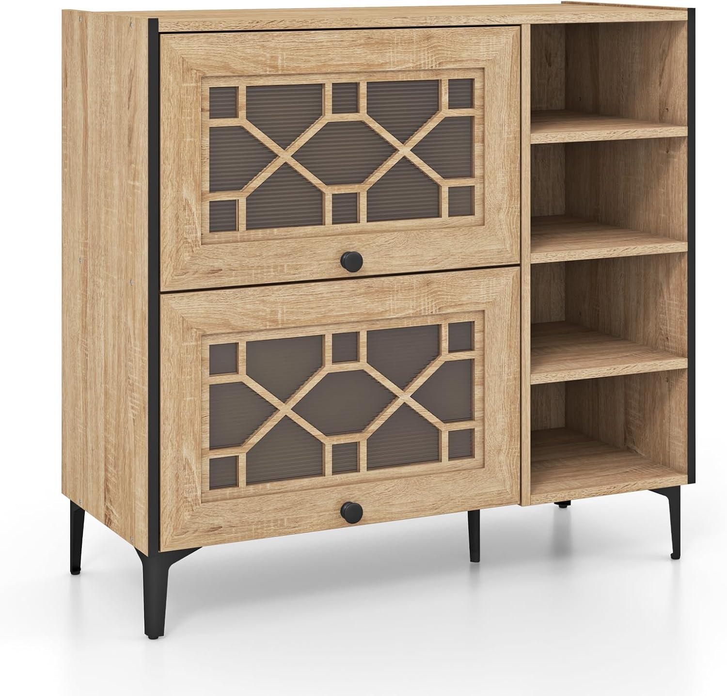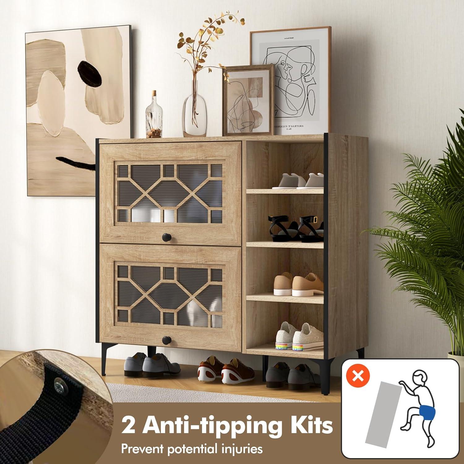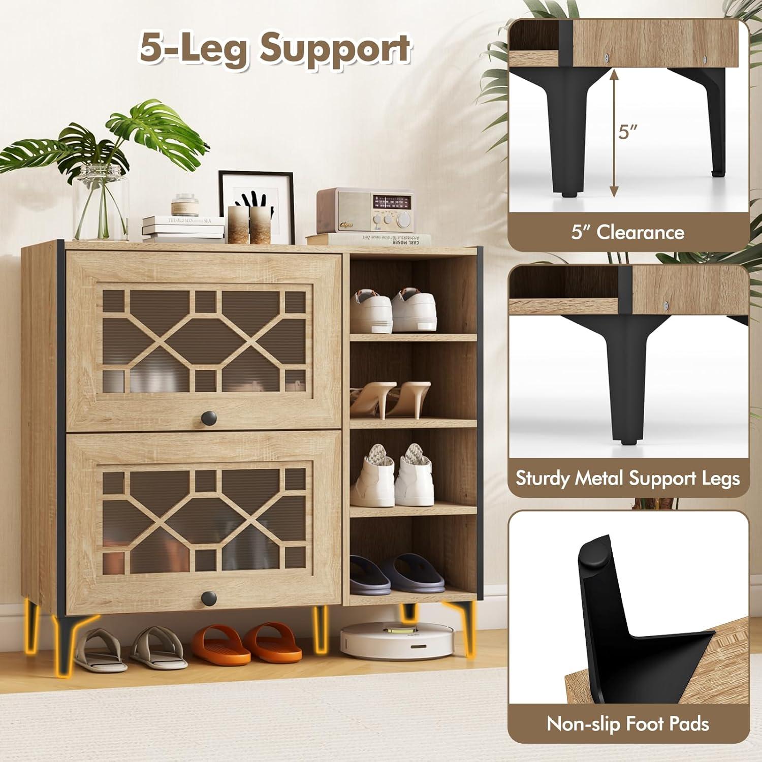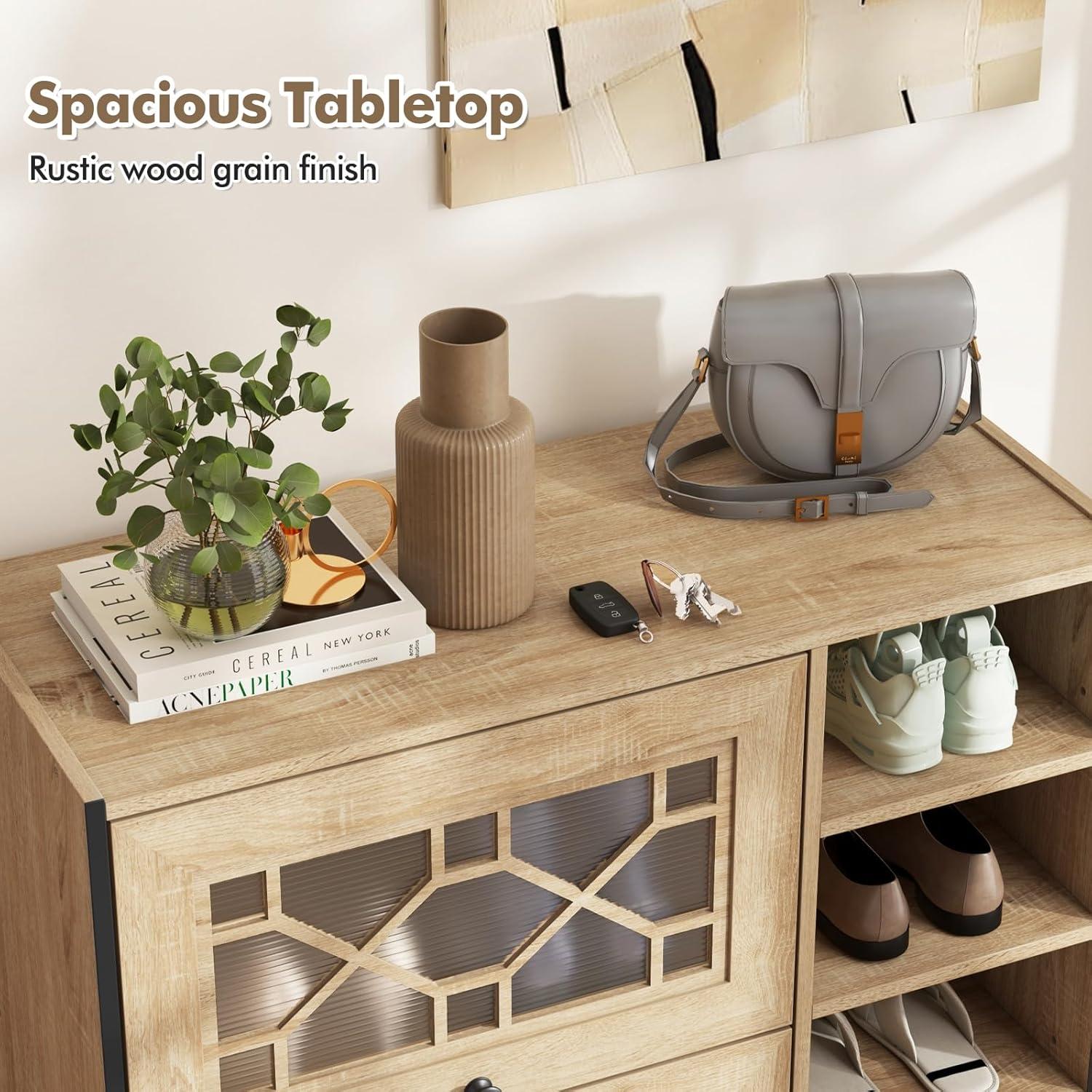 Giantex Shoe Cabinet with Flip & Slide Doors, Entry Way Shoe Rack Cabinet with Adjustable Cube Shelves, Freestanding Wood Shoe Cabinet Storage for Entryway, Closet, Hallway, Living Room, Foyer, Oak(Decorative Doors)