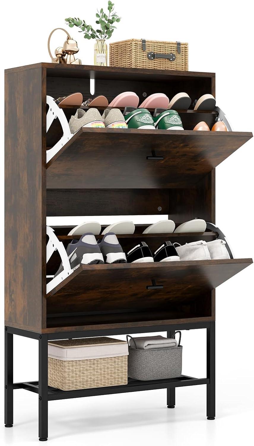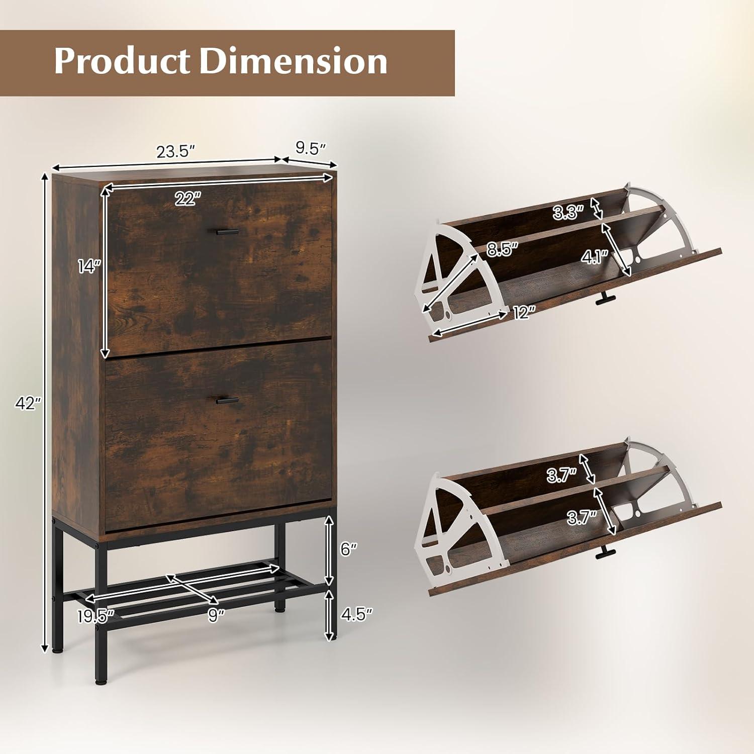 Giantex Shoe Storage Cabinet - Hidden Shoe Organizer with 2 Flip Drawers, Adjustable & Removable Interior Shelves, Freestanding Narrow Shoe Rack Cabinet for Entryway Hallway, Rustic Brown