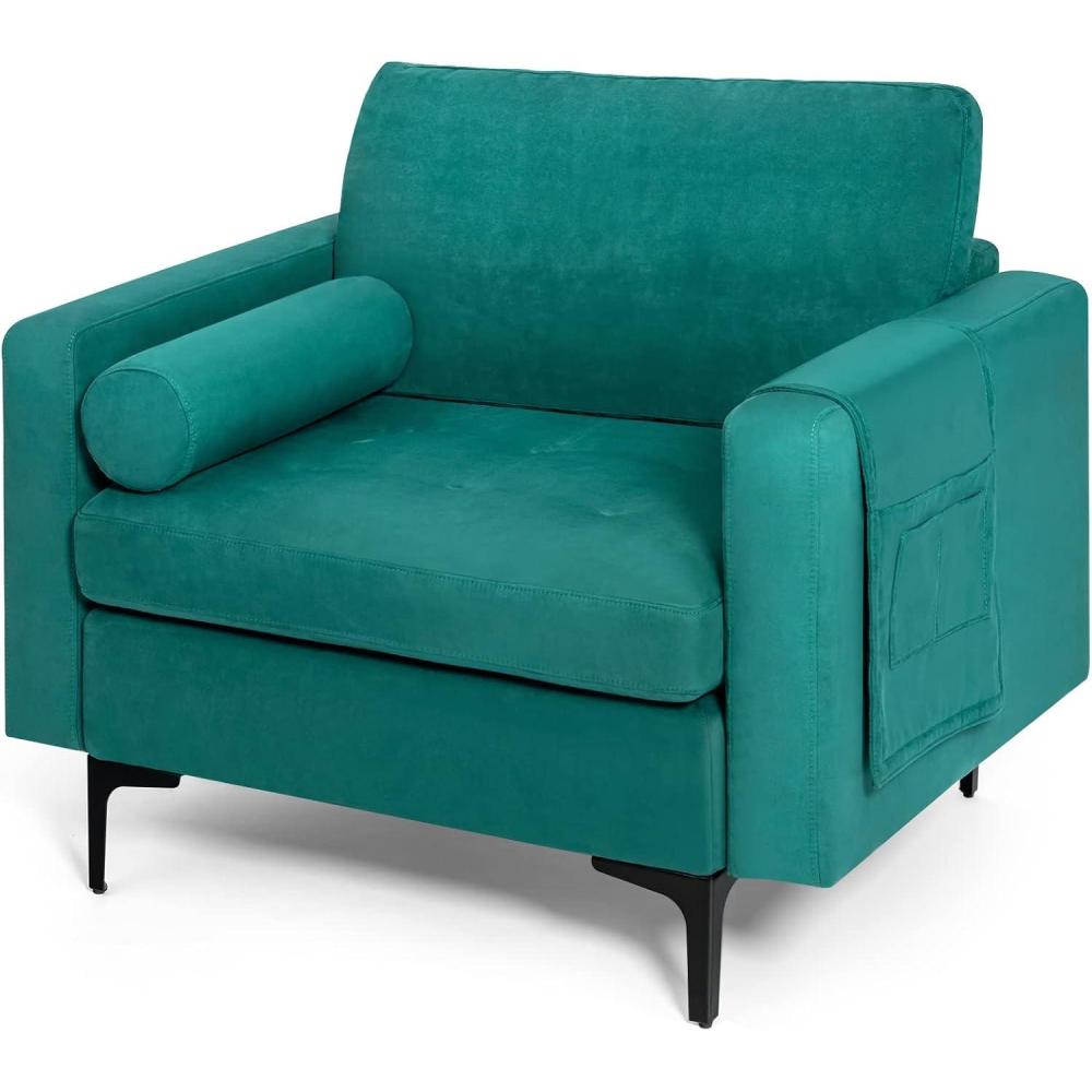 〖Detachable Pillow & Armrest Magazine Pocket〗: The detachable back pillow with zipper is filled with A-grade cotton, goose-down and latex particle, while the bolster is padded with soft sponge. Thus, you will feel comfortable when touching the back cushion and bolster. The accent chair comes with an armrest caddy holder for magazine or books and also has 2 pockets for remote control.