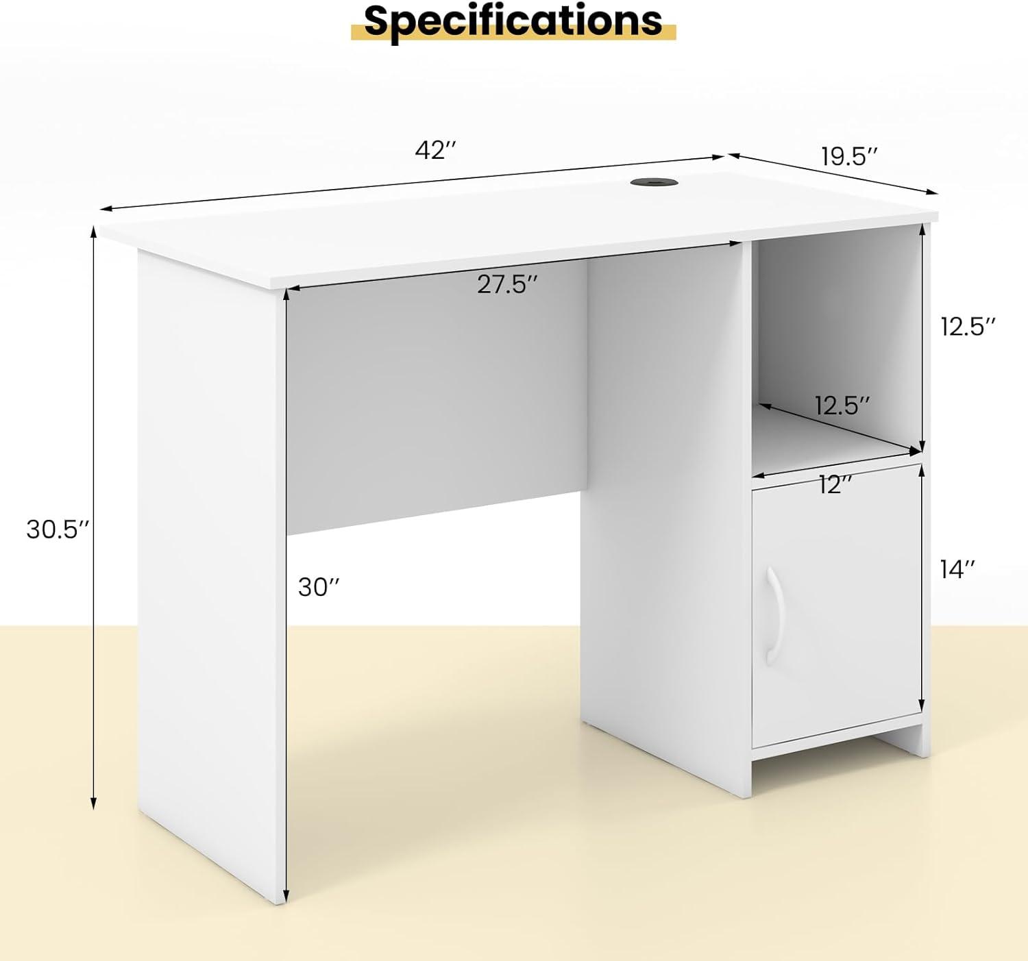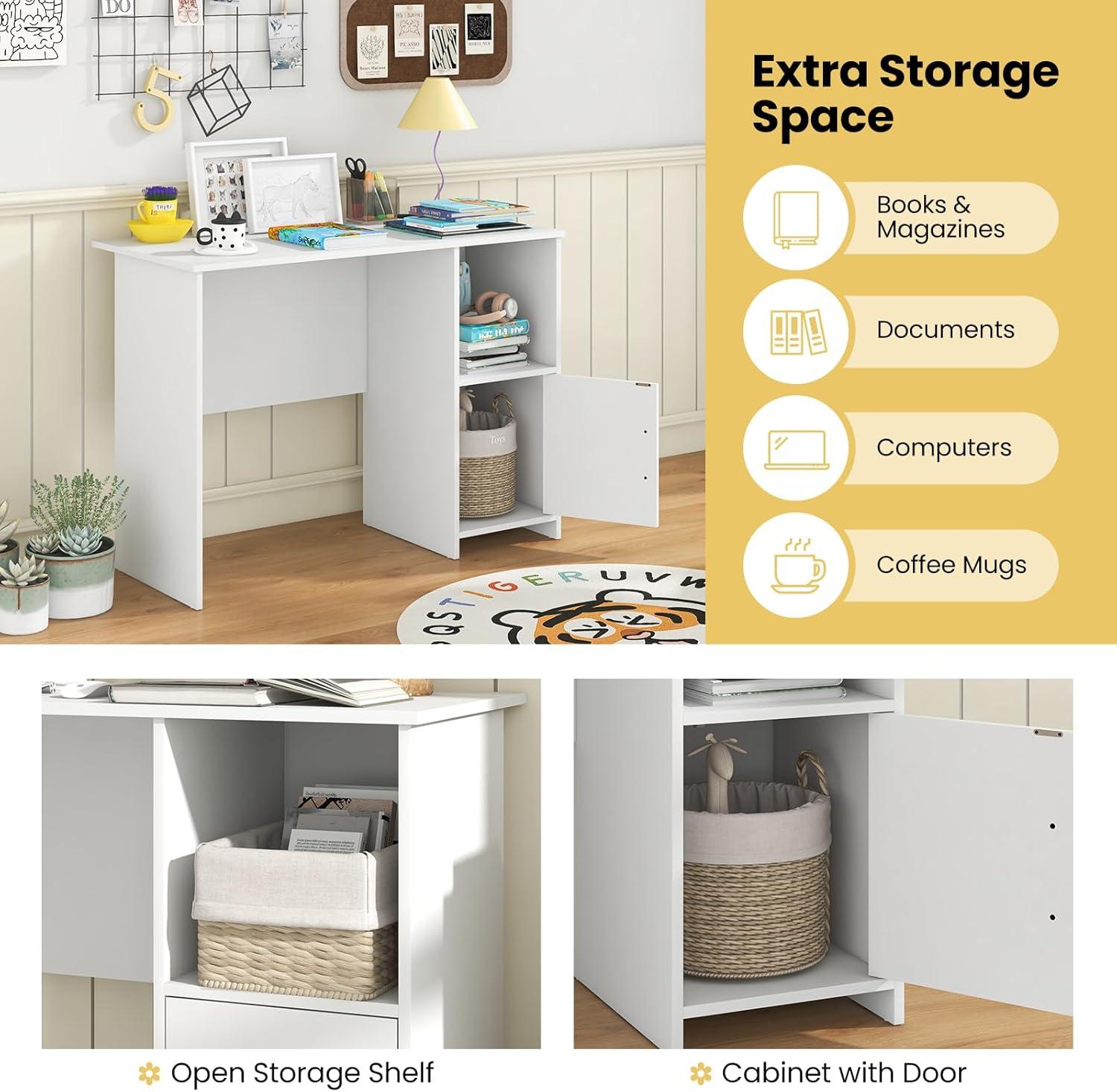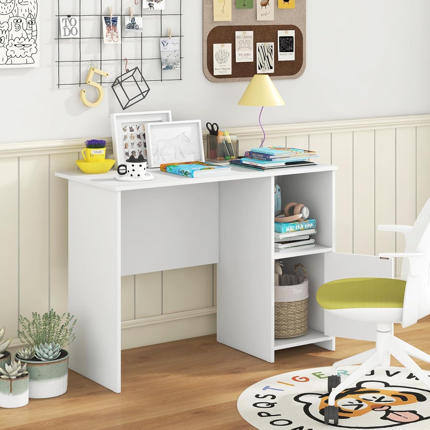 Elevate your workspace with our multifunctional PC desk designed for both efficiency and style. The spacious tabletop ensures a clutter-free environment. With extra storage space including an open shelf and a cabinet, this desk promotes a neat and organized workspace, keeping computers, documents, and other items in order. The cable management holes eliminate messy wires, providing quick access to power outlets. Crafted with thickened boards and solid connections, this desk ensures long-term usability. Non-slip foot pads prevent scratches, while the magnetic catch and convenient handle make accessing interior items effortless. Embrace the modern design that complements various home styles, making it a versatile piece suitable as a computer desk, writing desk, study desk, or makeup table, adding elegance to any room effortlessly.