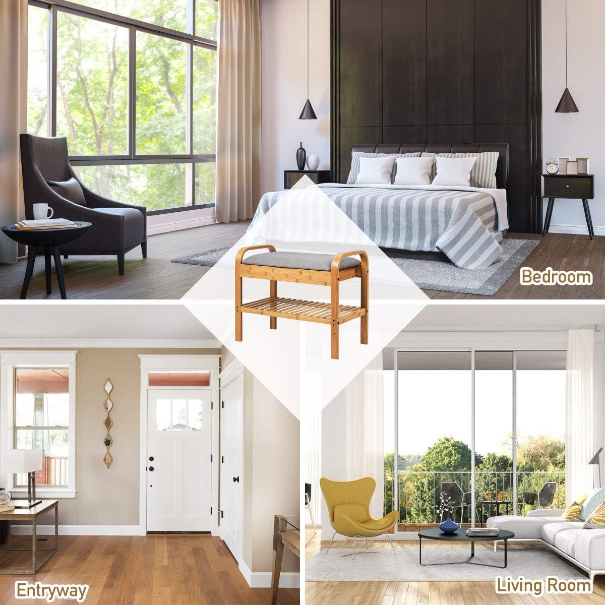 【Sturdy Bamboo Shoe Storage Bench】: Made of premium bamboo, the shoe rack is sturdy and durable for long time use. The boards are fixed with galvanized steel screws to ensure a firm and stable structure, and can provide weight capacity up to 330 lbs.
