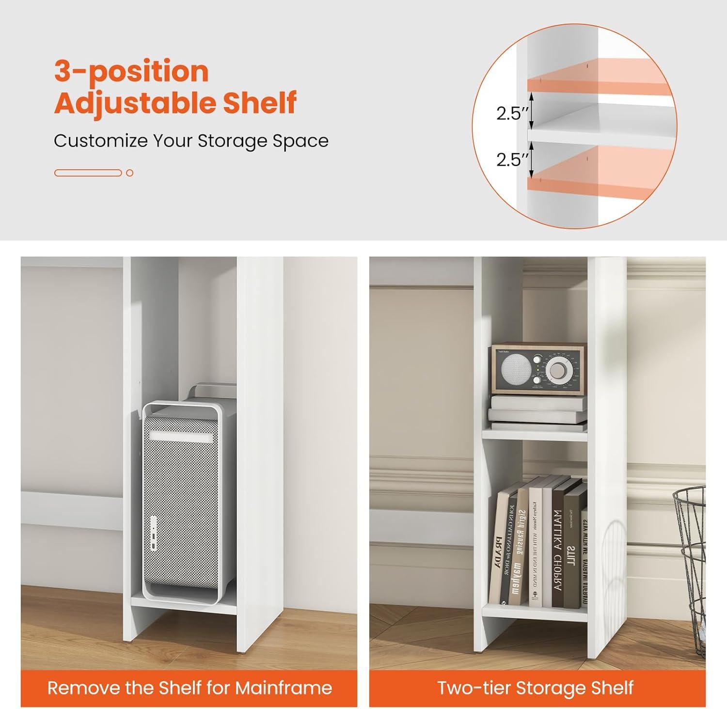 [Adjustable Storage Solution]: This computer desk tailors the 3-position shelf to meet varying storage needs, accommodating items of all sizes, from computer hosts to larger essentials. Effortlessly switch between heights to keep your workspace organized and functional.