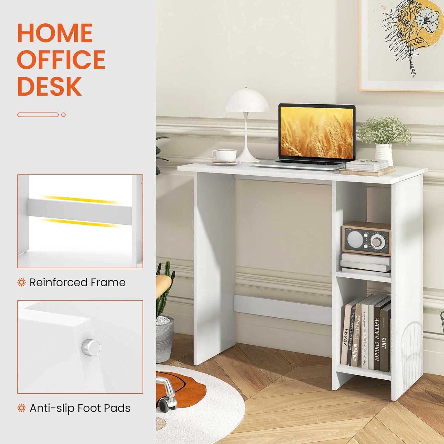 [Efficient Workspace]: Featuring ample desktop space for laptop, books, and stationery, the white writing desk promotes focus and productivity. Perfectly compact for dorms, optimizing floor space and reducing clutter for a conducive working environment.