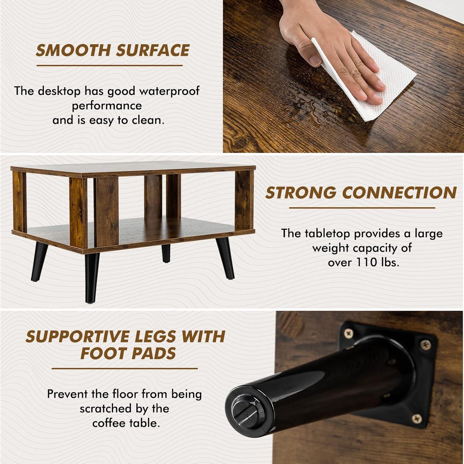 Are you looking for a trendy coffee table? Check out this 2-tier coffee table! The table's wood grain gives it an elegant look, and its stylish shape makes it adaptable to different styles of living rooms, studies or offices. The non-slip feet below the table legs can effectively protect the floor from scratches. And the quality engineered wood and strong connections make the coffee table structurally stable. Moreover, 4 solid tapered structural support legs can a high weight capacity of 150 lbs. The 2-tier design gives you extra storage space, which allows you to place snacks, magazines, game consoles and stereos on the storage shelves. It will be a practical and beautiful addition to your living room!