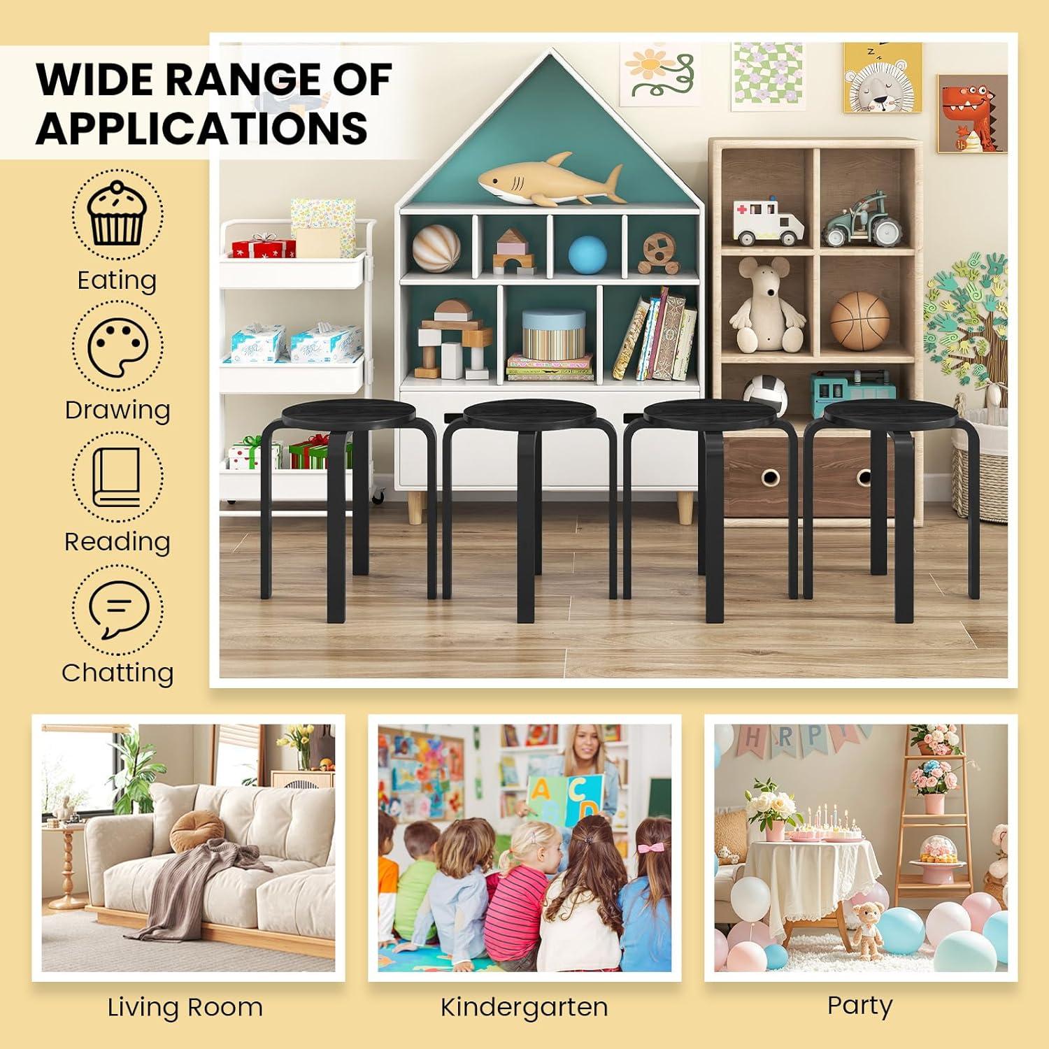 Giantex Stackable Stools Set of 4, 18" Round Stacking Backless Nesting Stools, School Chairs, Flexible Seating for Classroom Elementary, Students, Adults, Kitchen, Dining Room (Natural & White)(Black)