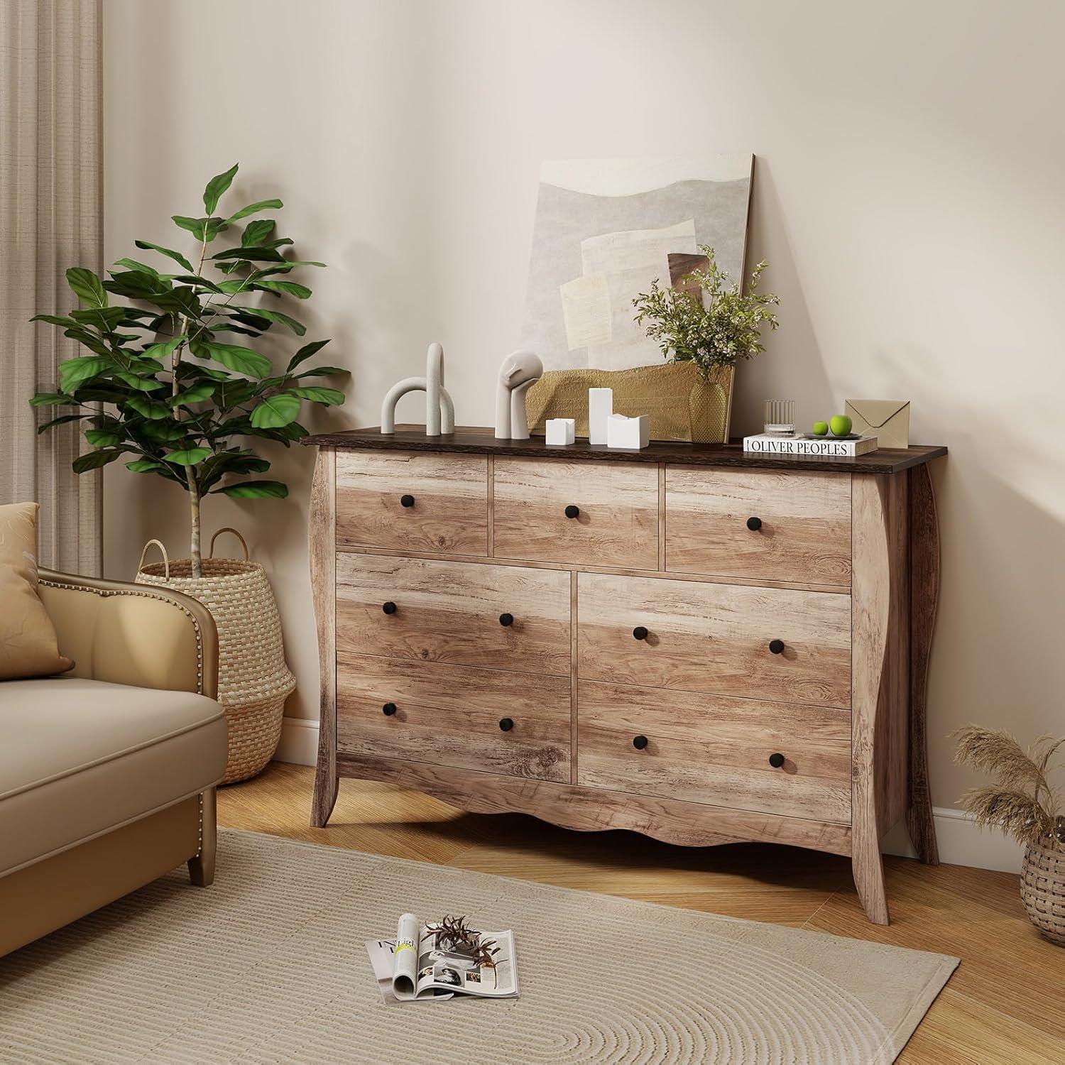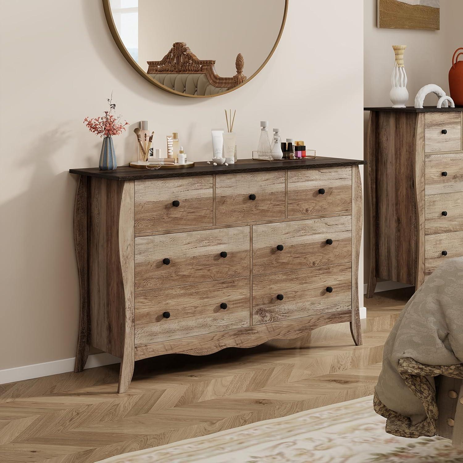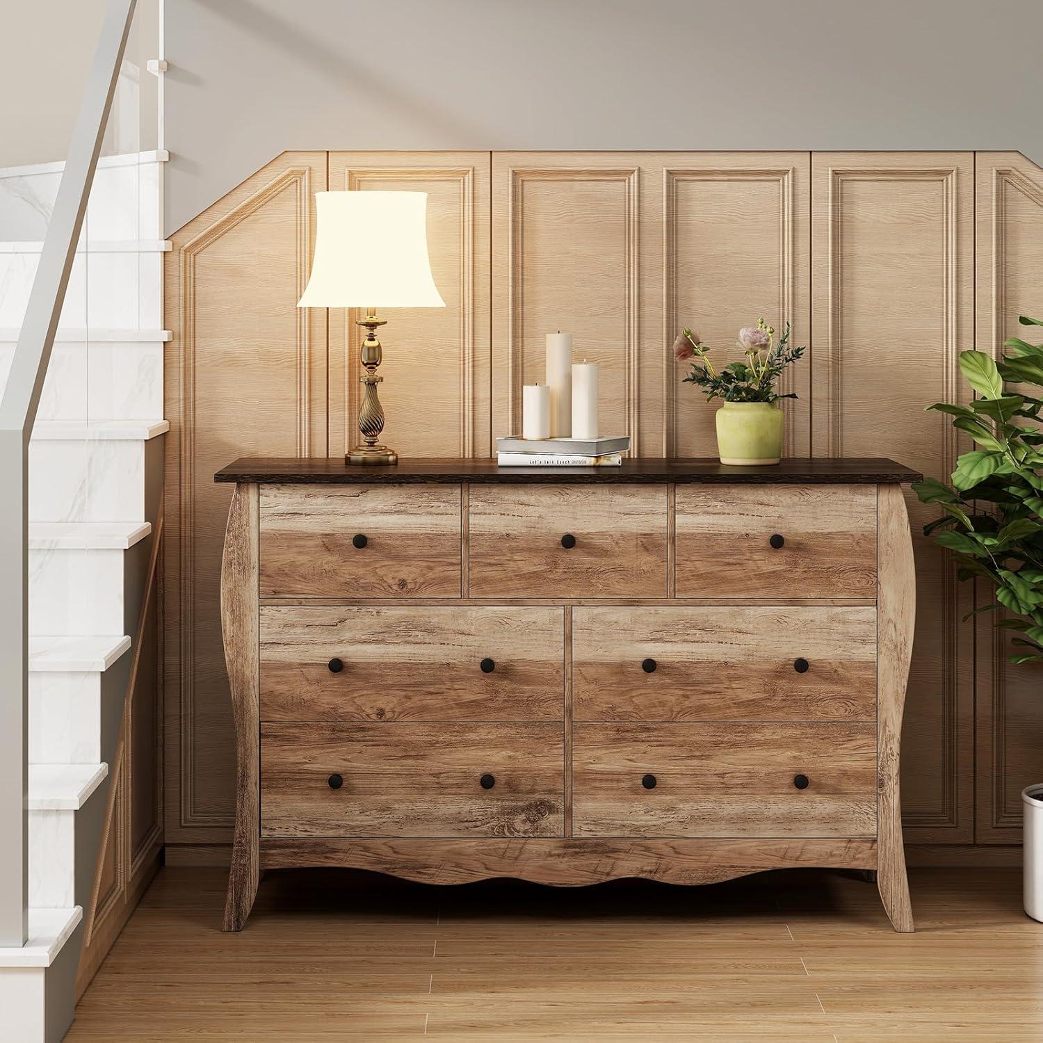 [Warmth of Farmhouse Elegance]: Embrace the cozy charm of farmhouse style with our storage cabinet, featuring a curved silhouette and wood grain finish that adds timeless appeal to any room. Create a welcoming and lived-in atmosphere in your home.