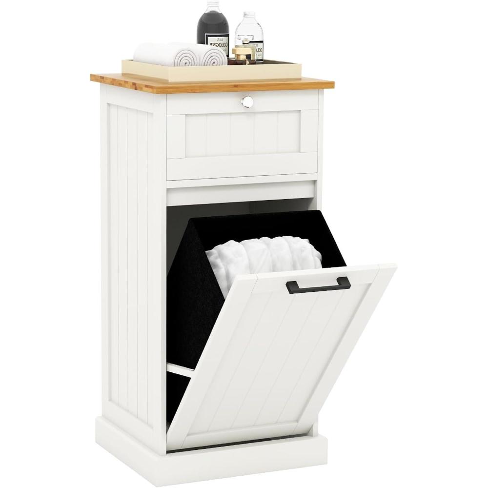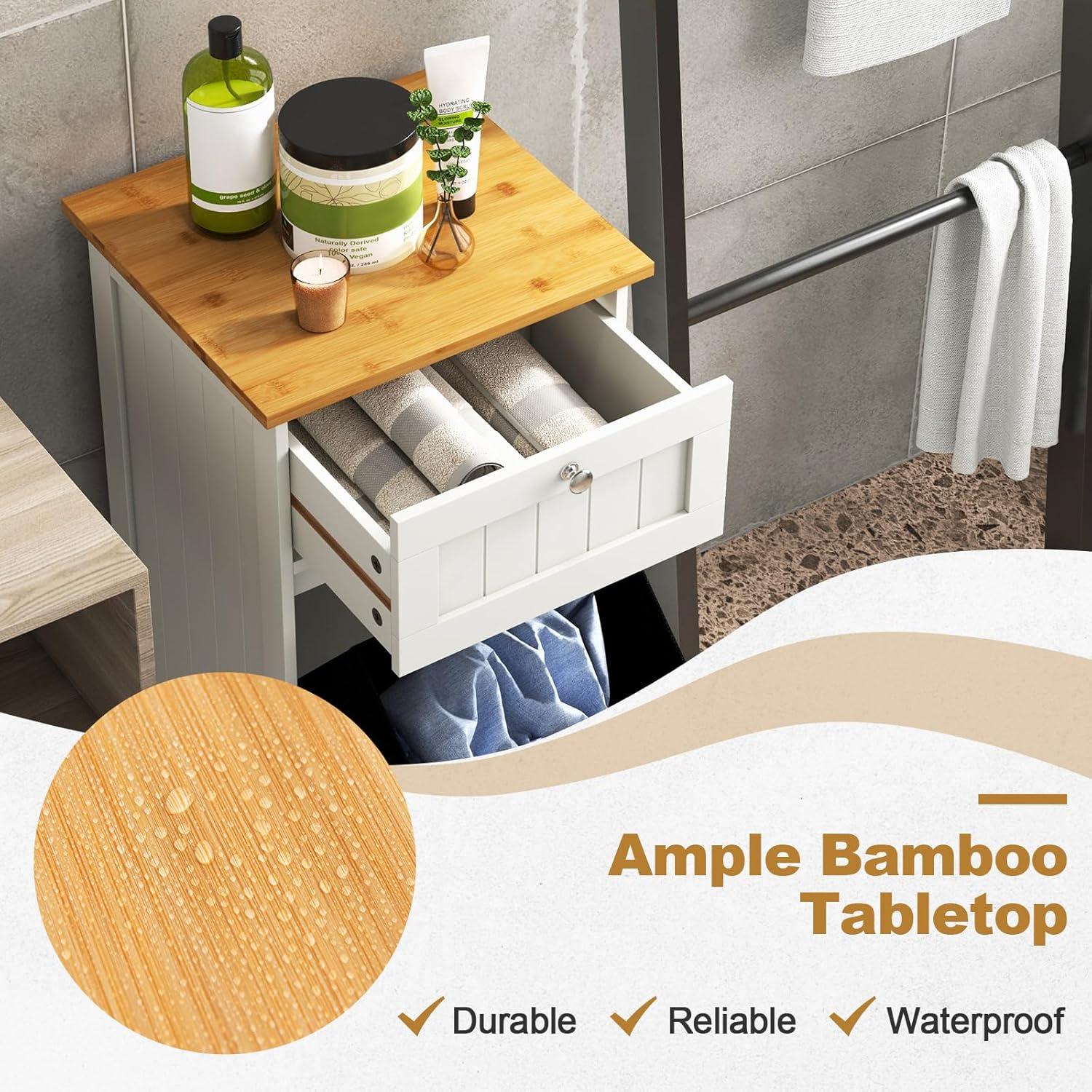 【Premium Quality Construction】Crafted from natural bamboo tabletop and select wood frame, our laundry storage cabinet is designed for longevity, reliability, and waterproof properties that prevent deformation.
