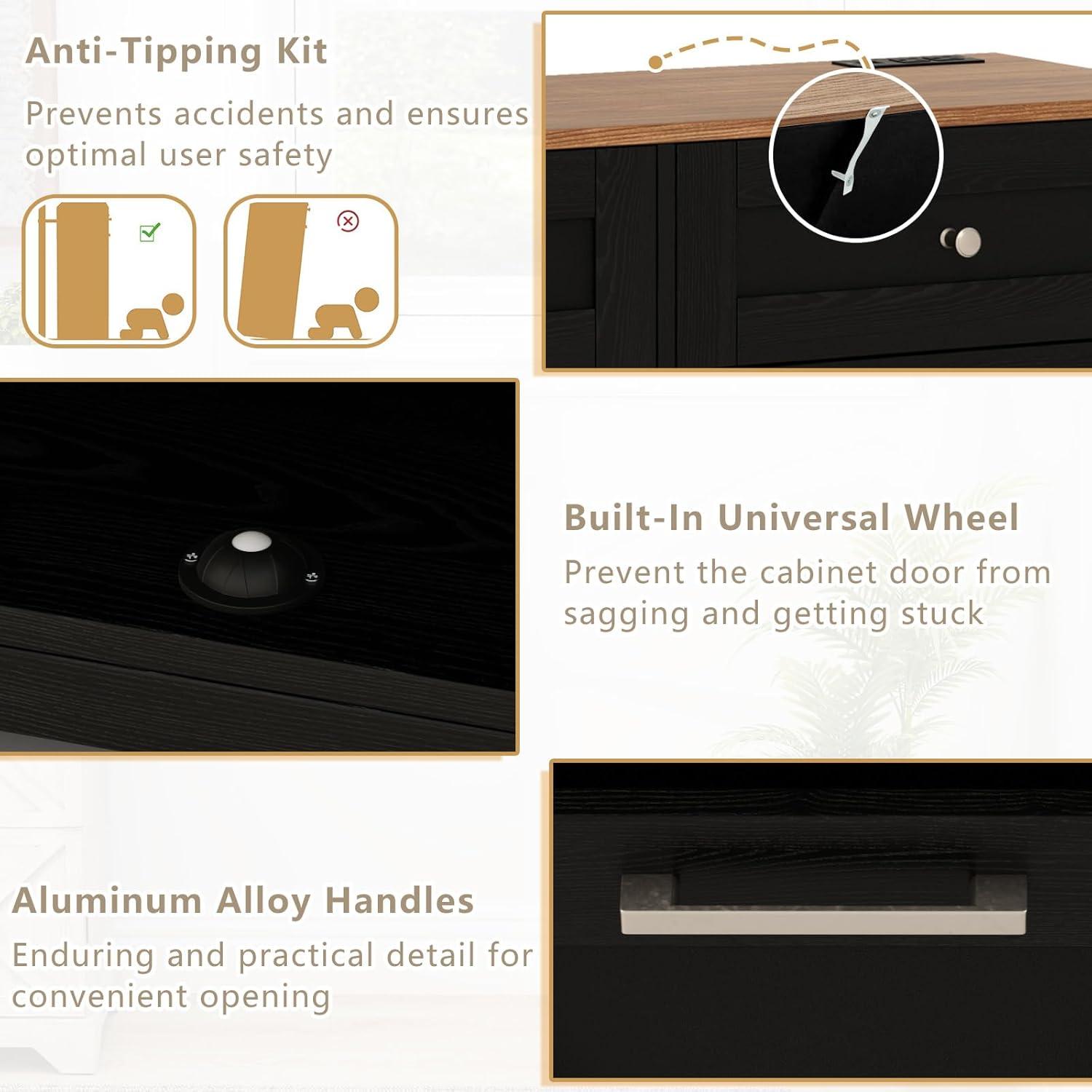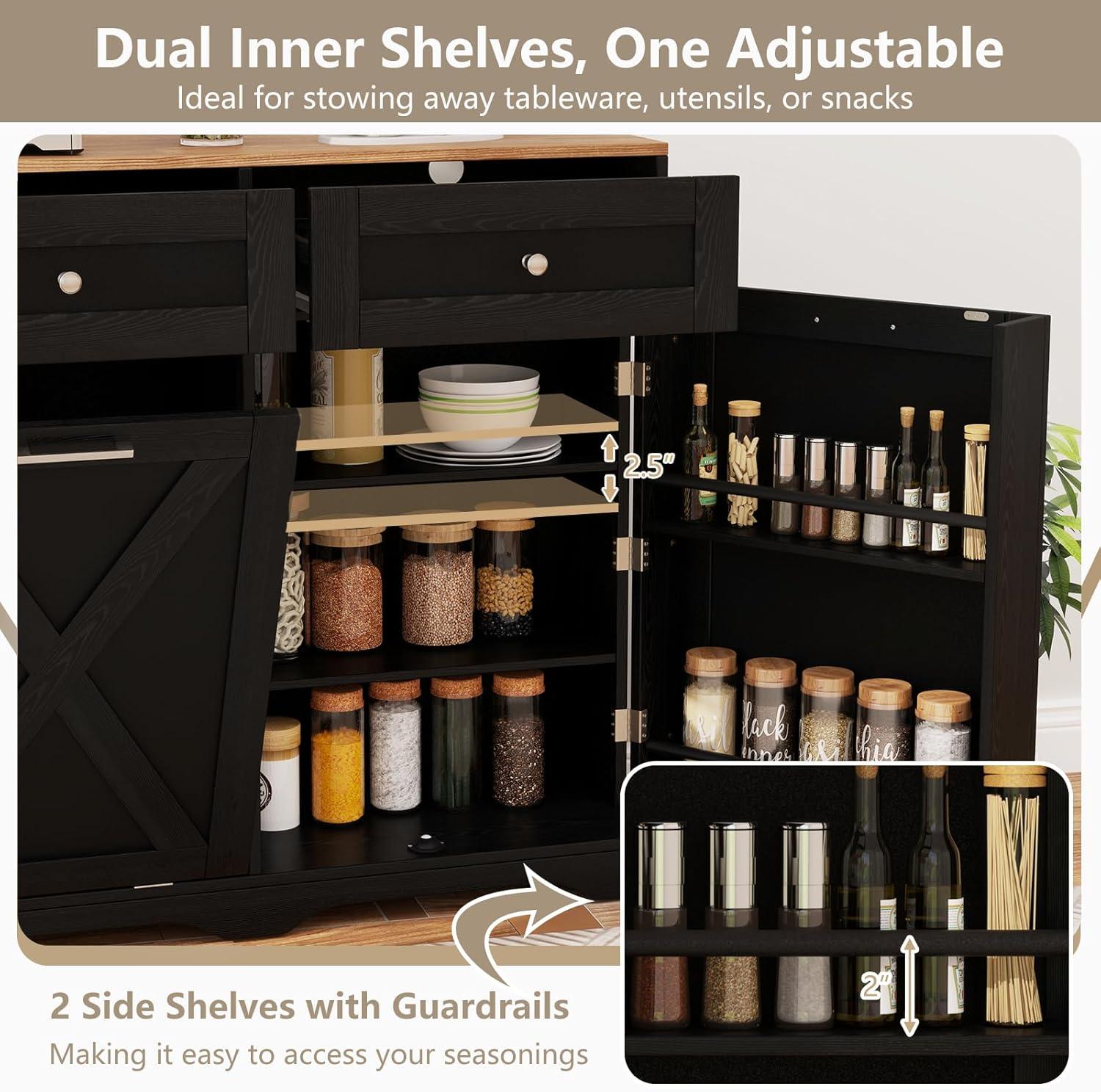 [Side Space for Kitchen]: Optimize your kitchen with the pantry storage cabinet, featuring 2 side shelves, each bordered by 2″ high guardrails. The additional shelving keeps essential ingredients within arm’s reach, streamlining your cooking experience and keeping your countertop clutter-free.