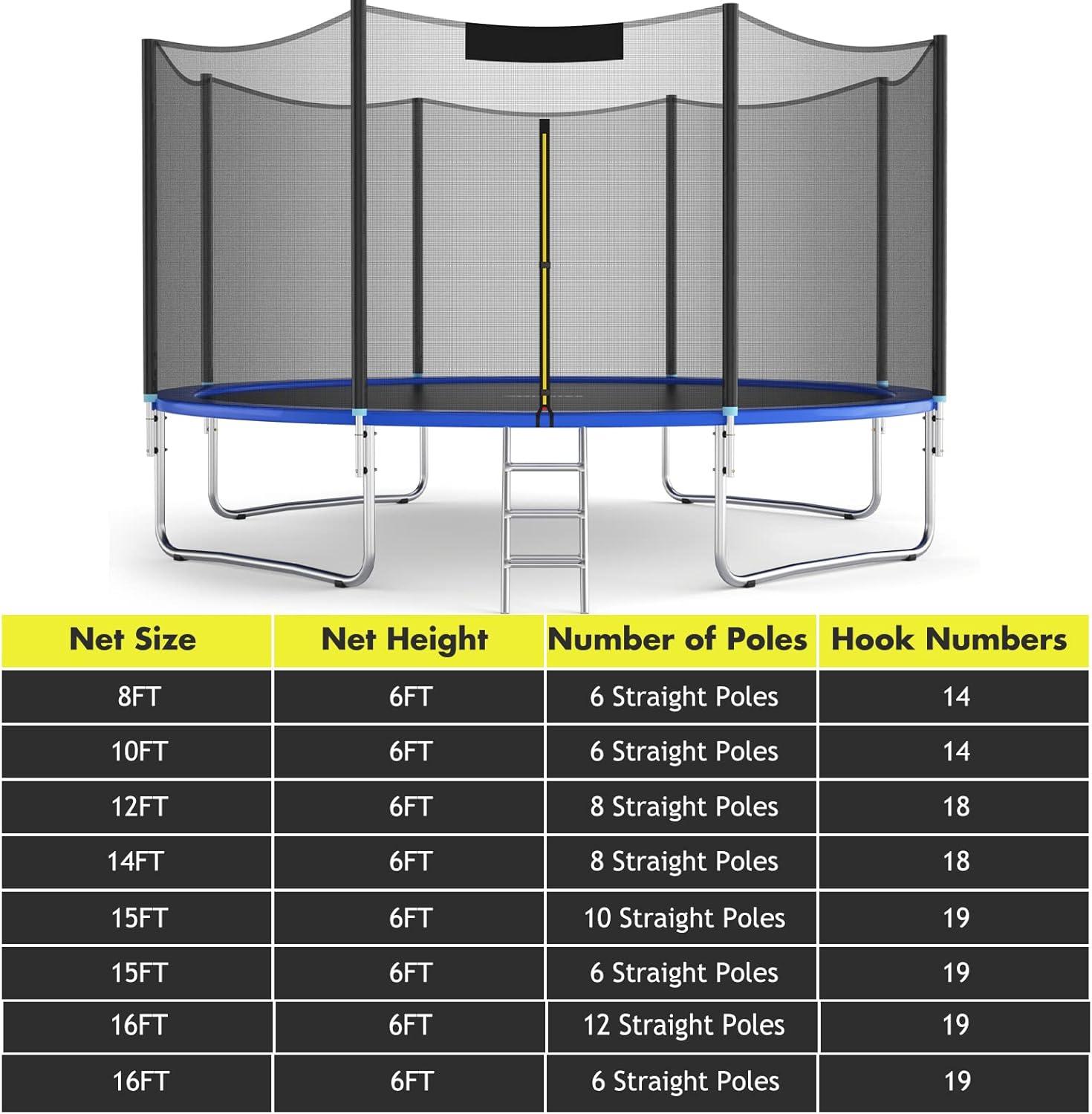 Giantex Trampoline Safety Net, 8 10 12 14 15 16Ft Weather-Resistant Replacement Enclosure Net for Round Frame, with Double-Headed Zippers, Protection Buckles & Enhanced Hook, Poles Not Included(16FT 6 Poles)