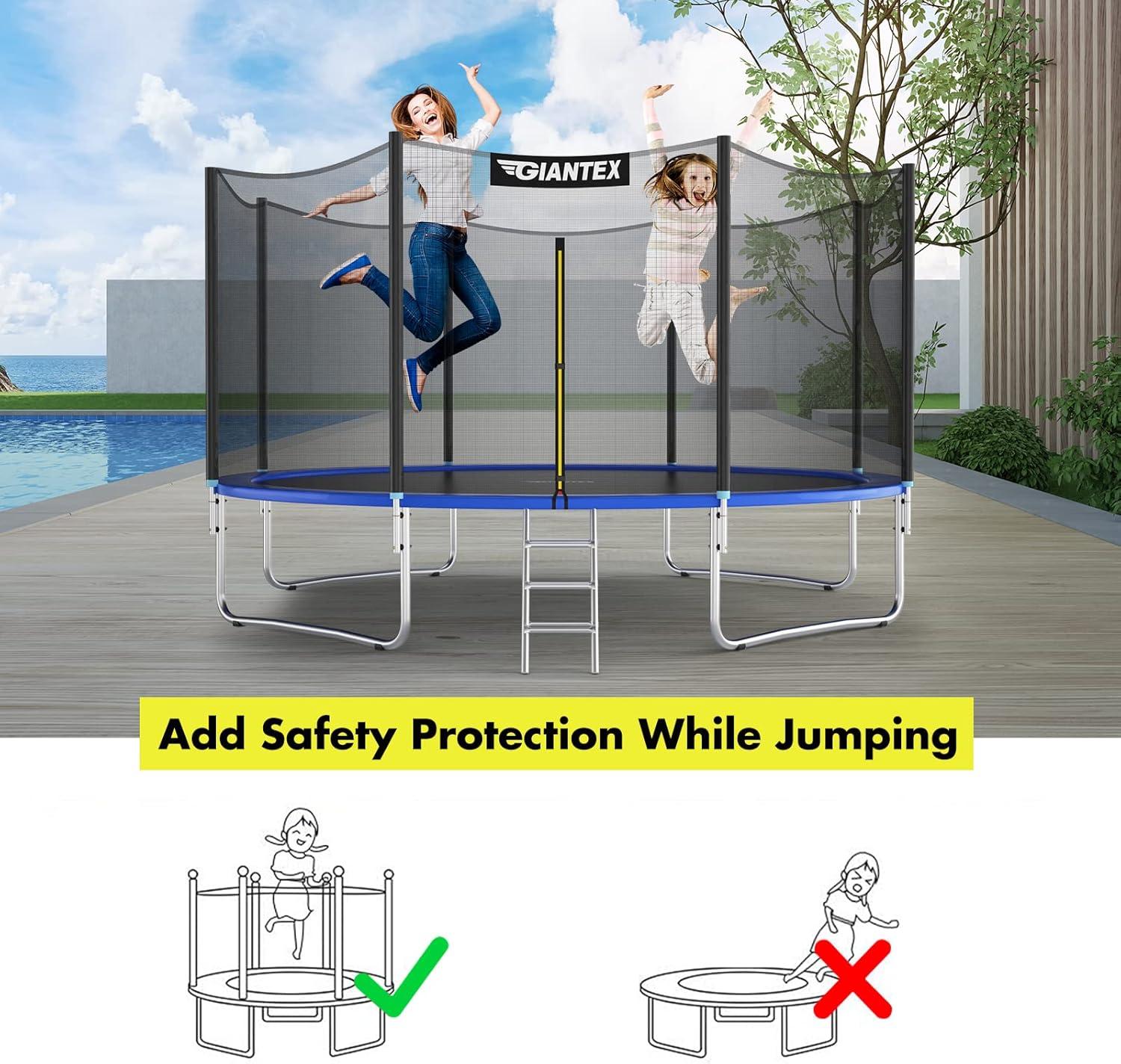 Giantex Trampoline Safety Net, 8 10 12 14 15 16Ft Weather-Resistant Replacement Enclosure Net for Round Frame, with Double-Headed Zippers, Protection Buckles & Enhanced Hook, Poles Not Included(16FT 12 Poles)