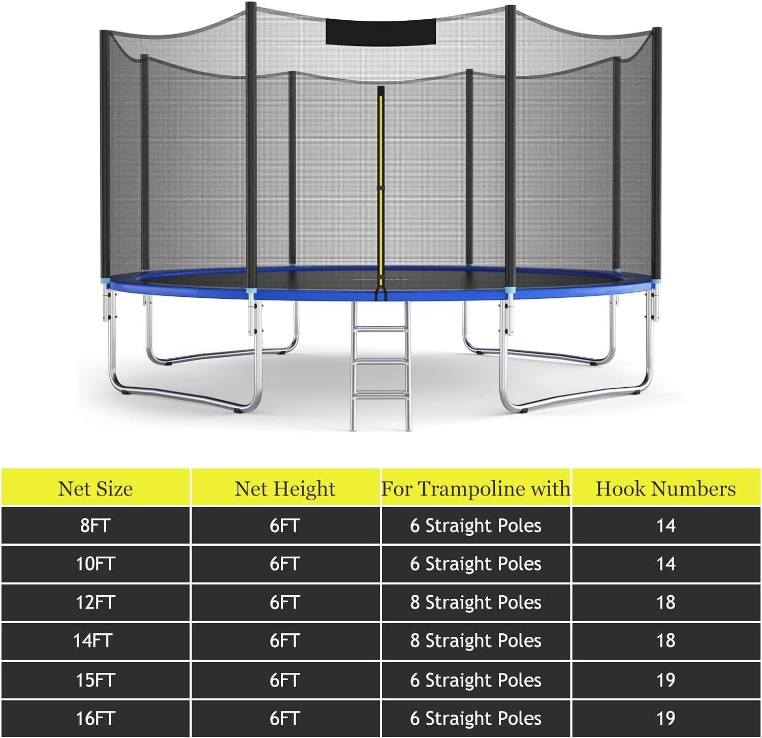 Giantex Trampoline Safety Net, 8 10 12 14 15 16Ft Weather-Resistant Replacement Enclosure Net for Round Frame, with Double-Headed Zippers, Protection Buckles & Enhanced Hook, Poles Not Included(16FT 6 Poles)