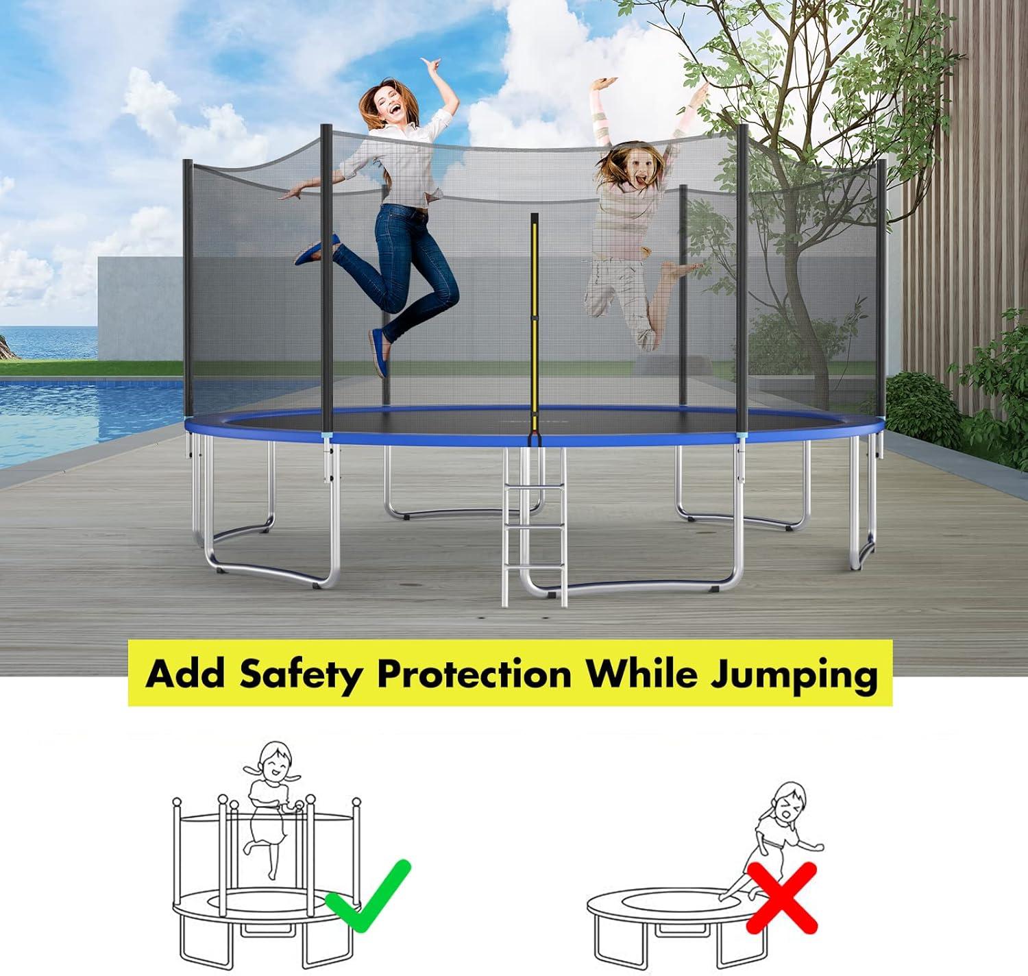 [Wide Range of Sizes]This tightly woven trampoline safety nets come in various sizes, like 8Ft 10Ft 12Ft 14Ft 15Ft and 16Ft. Since its weather resistance feature, the net can be used both indoors and outdoors. ️ The poles are not included. ️