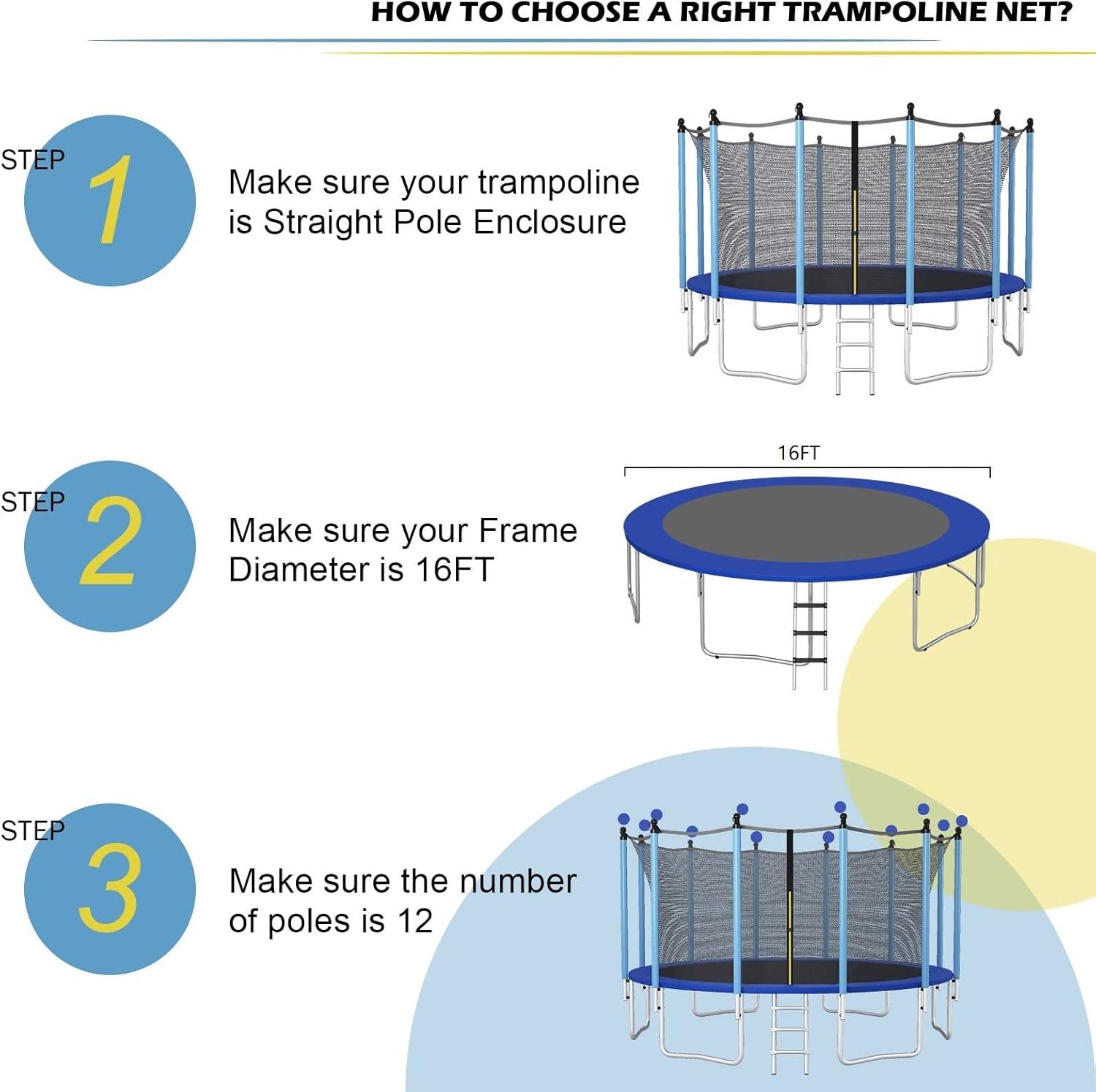 [ Choose A Matching Replacement Net ]: This trampoline enclosure net is universally compatible for round trampolines from most brands. In order to get a matched net, you should check the diameter and type of your trampoline at the beginning.