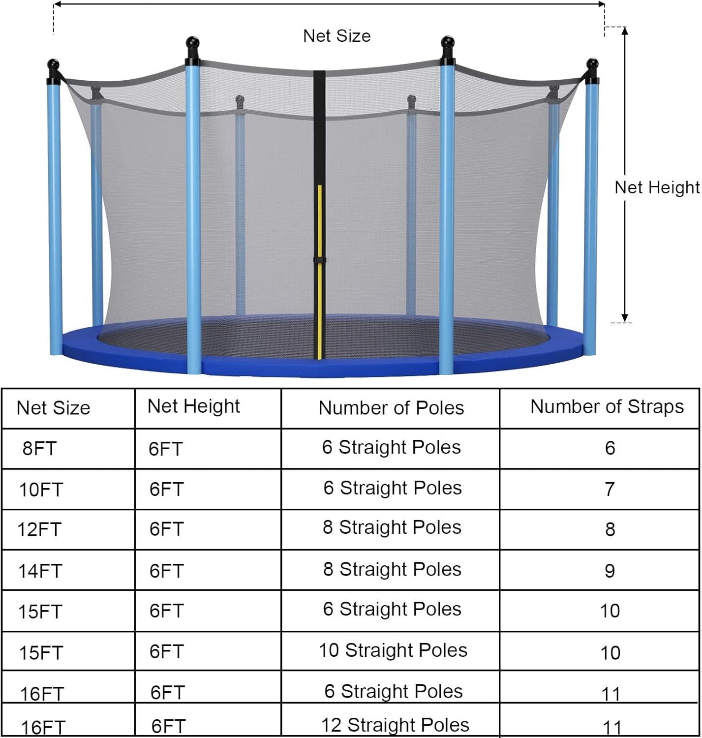 [ Humanized Design for Easy Entrance ]: The double-headed zipper helps kid to open the door from the inside or outside for easy entrance. Also, featured with protective buckles, this trampoline net ensures kids’ safety while jumping. What’s more, the all-round security net with 6ft in height, allowing kids free entertainment.