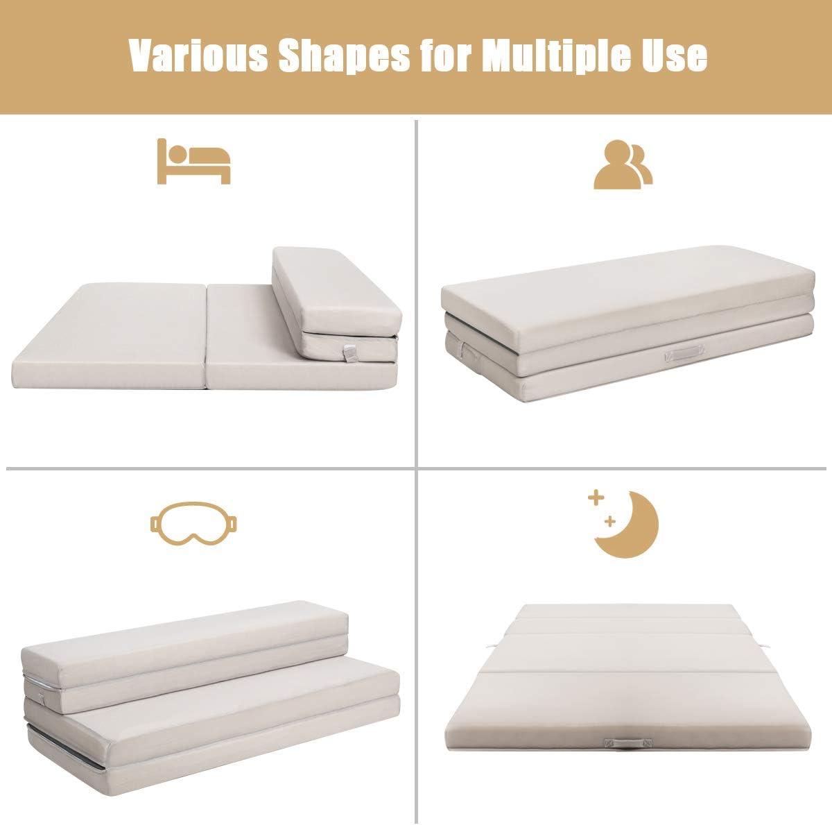【3 in 1 Multifunctional Design】 Our convertible folding mattress can be changed freely among sofa, lounge chair and bed to satisfy your different needs. This versatile mattress will be a perfect solution for small house with limited space which is great for Video gaming, reading, camping and sleeping.