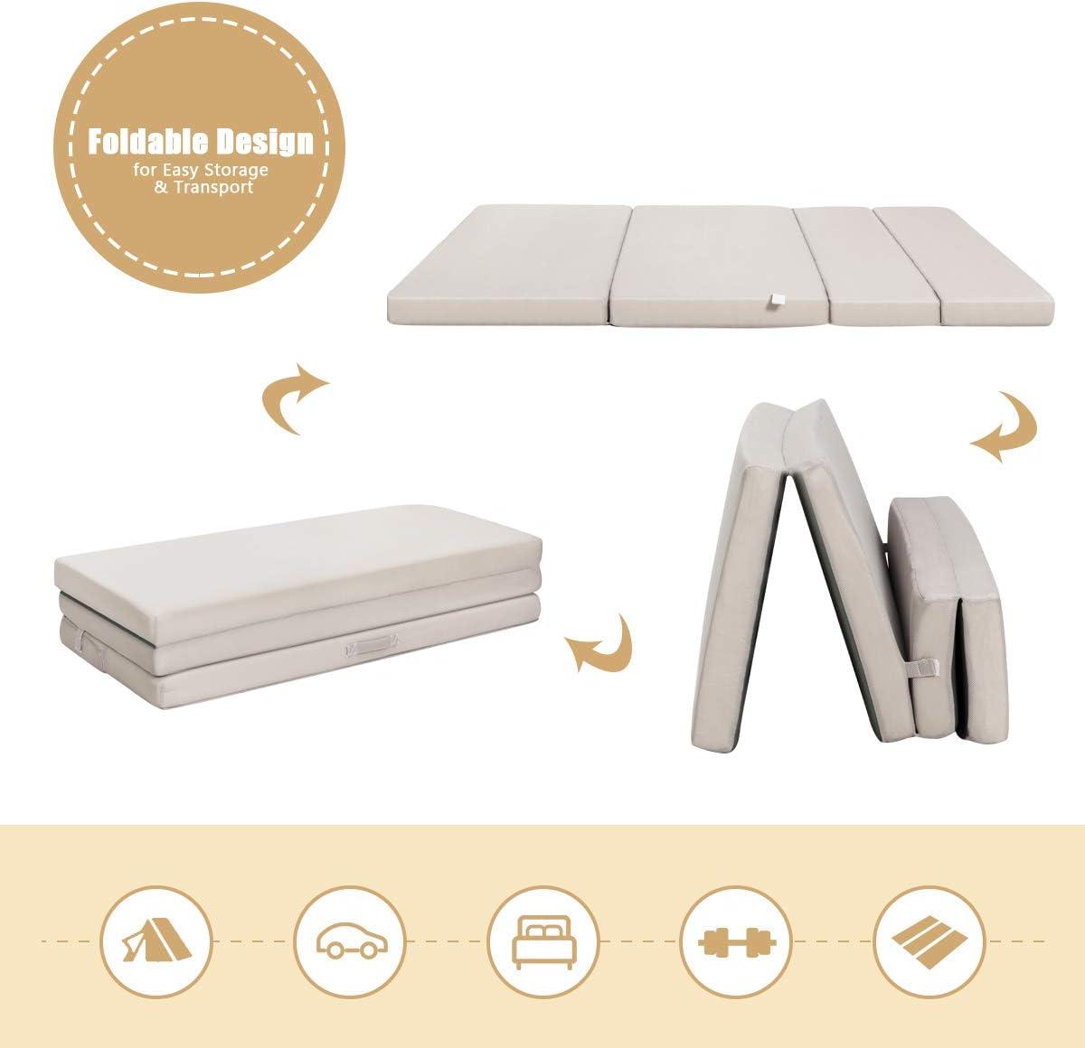 Giantex Tri-Fold Folding Mattress Queen – 4-Inch Portable Sofa Bed with Washable Cover & Handles, High-Density Foam Floor Couch for Adults, Guest Bed for Camping, Sleepovers, Gray(Grey)