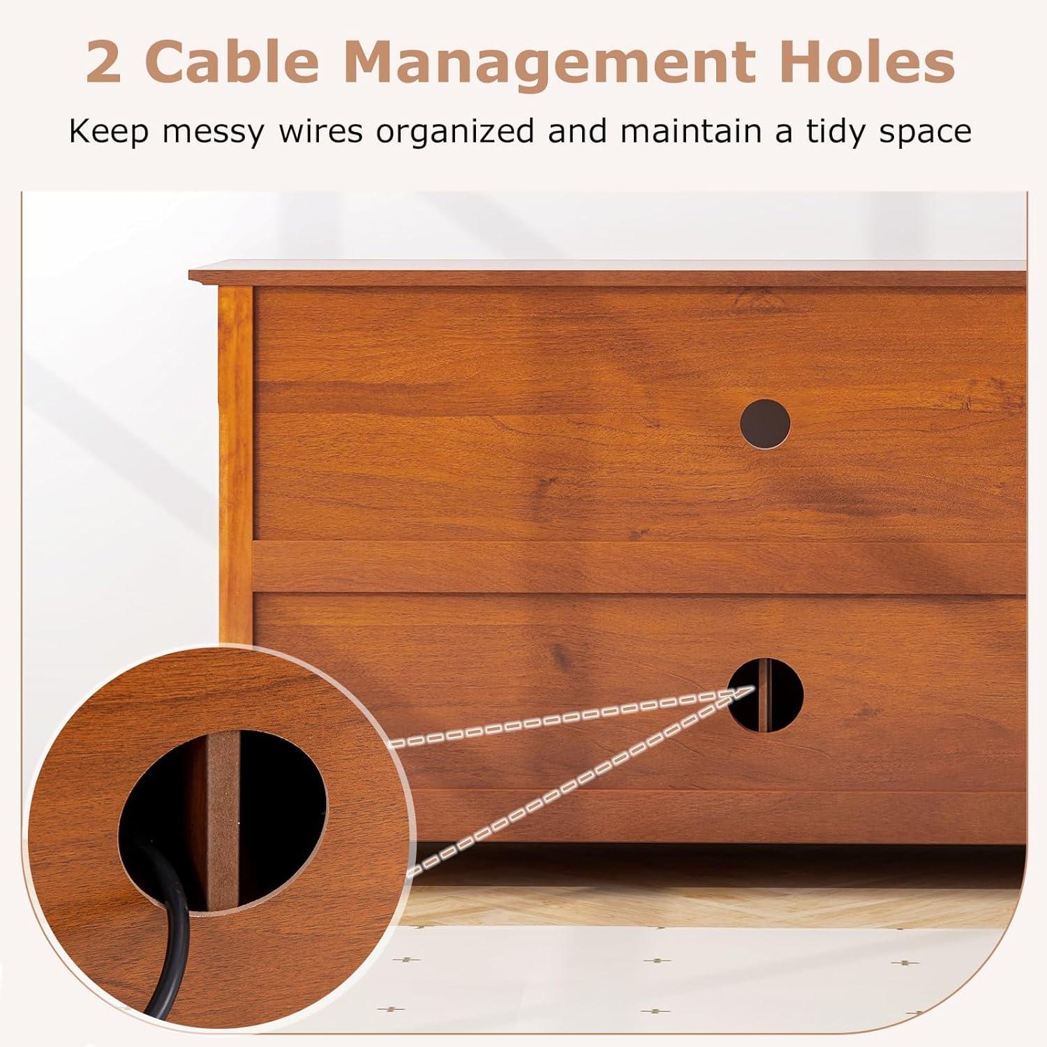 【Power Outlet Convenience】: Stay connected with ease using the built-in power outlet, featuring 2 outlets, 2 USB ports, and 1 type-C port. 2 cable management holes keep your media console space looking tidy and organized.