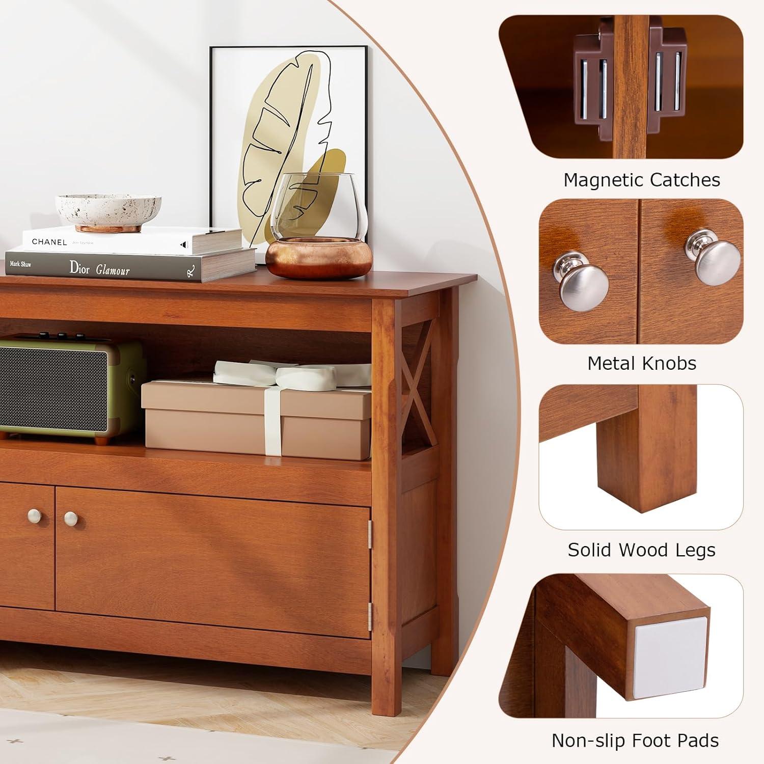 【Sturdy & Safe Construction】: Rest assured with 2 anti-toppling kits for added stability, solid wood legs, and X-shaped brackets for superior support. Non-slip foot pads ensure your TV cabinet stays in place.