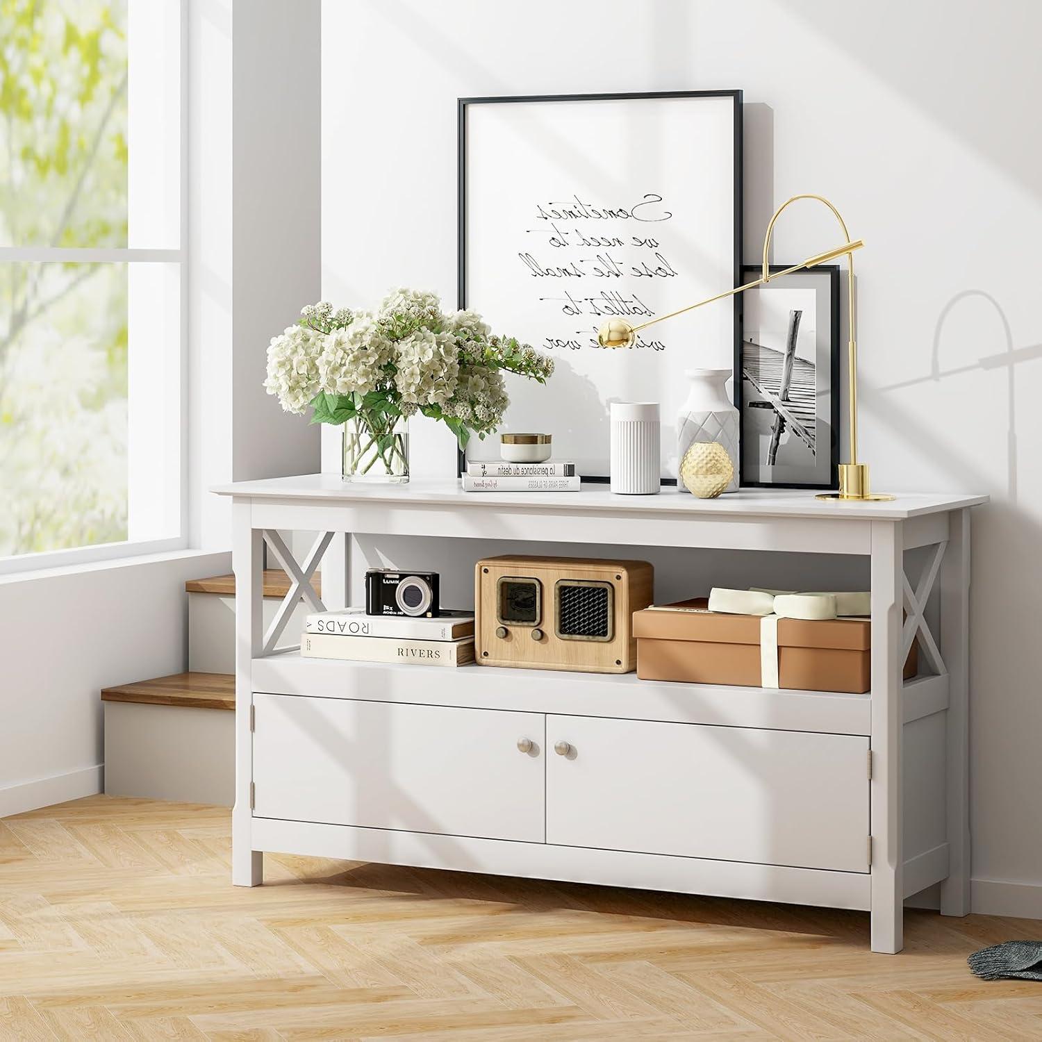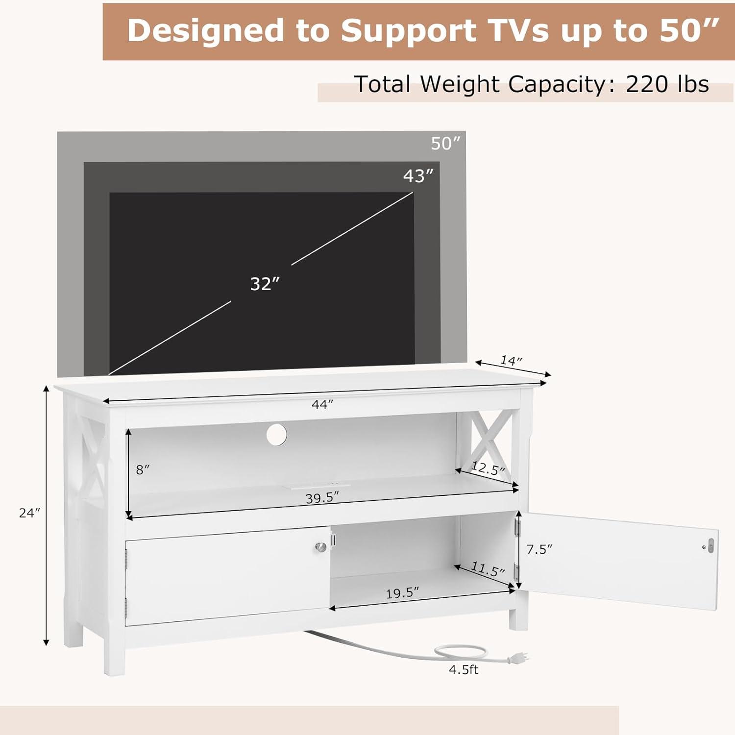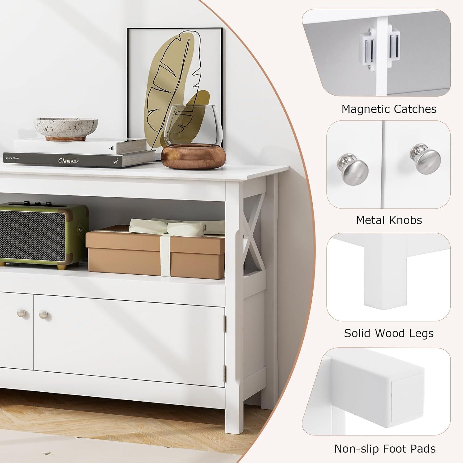Simplify your entertainment setup with our TV stand, specifically designed to accommodate TVs up to 50”. This sleek and modern TV console table includes 2 storage cabinets and an open shelf, offering flexible storage solutions for all your media needs.