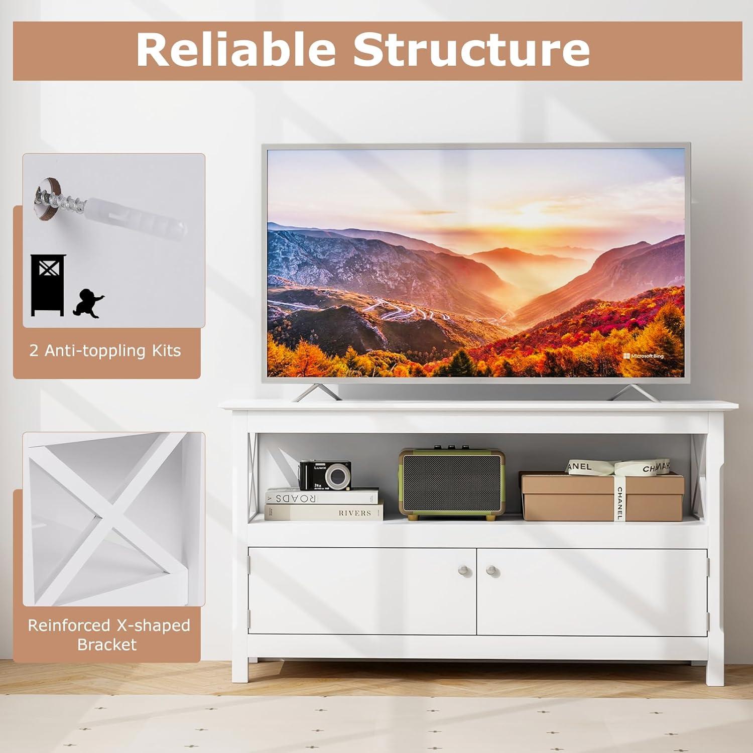 Thoughtfully constructed with X-shaped brackets, this TV stand not only ensures stability but also enhances the overall aesthetic of your space.