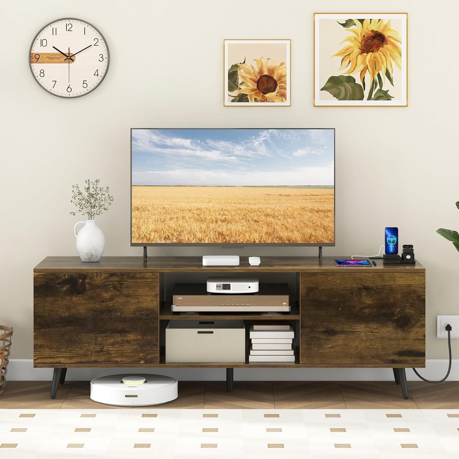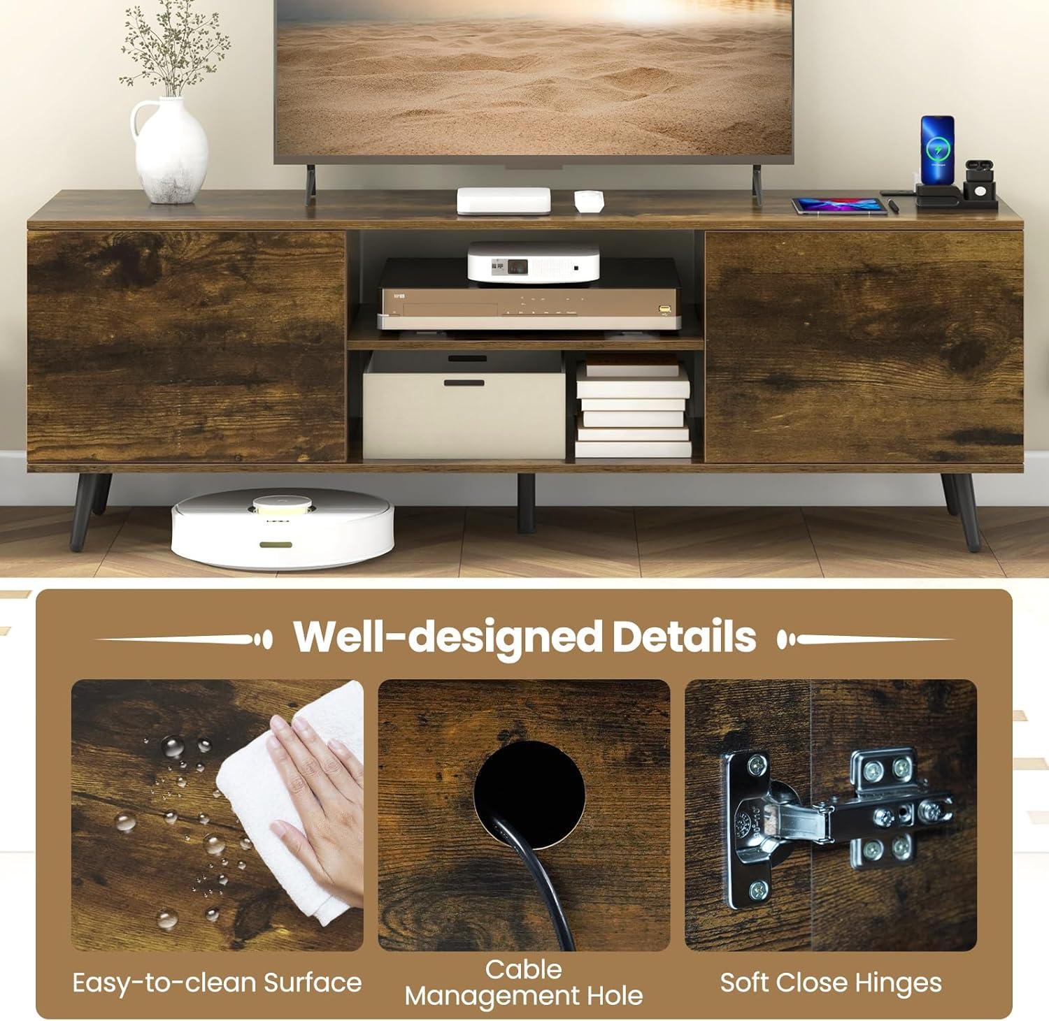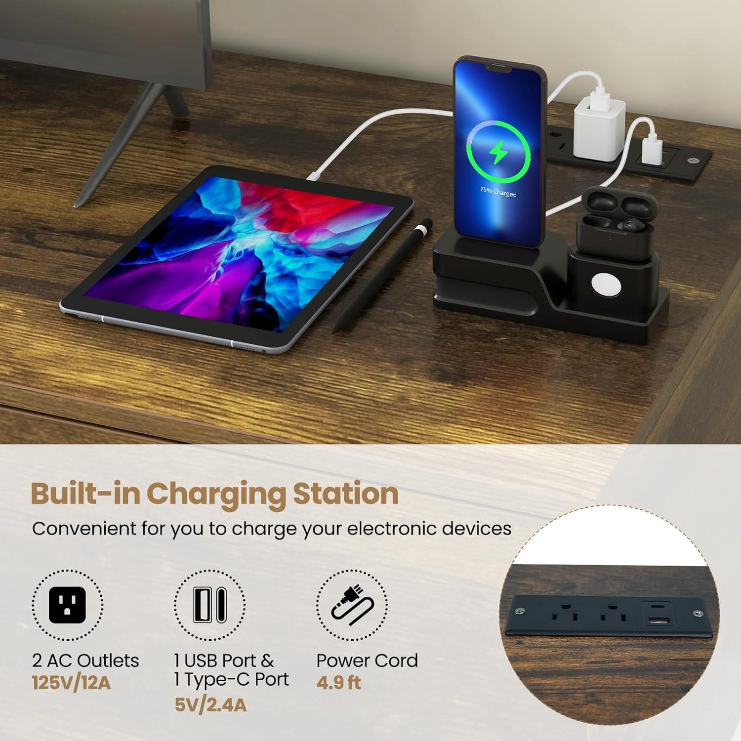 Introducing our versatile TV stand with a built-in charging station, perfect for TVs up to 60 inches.