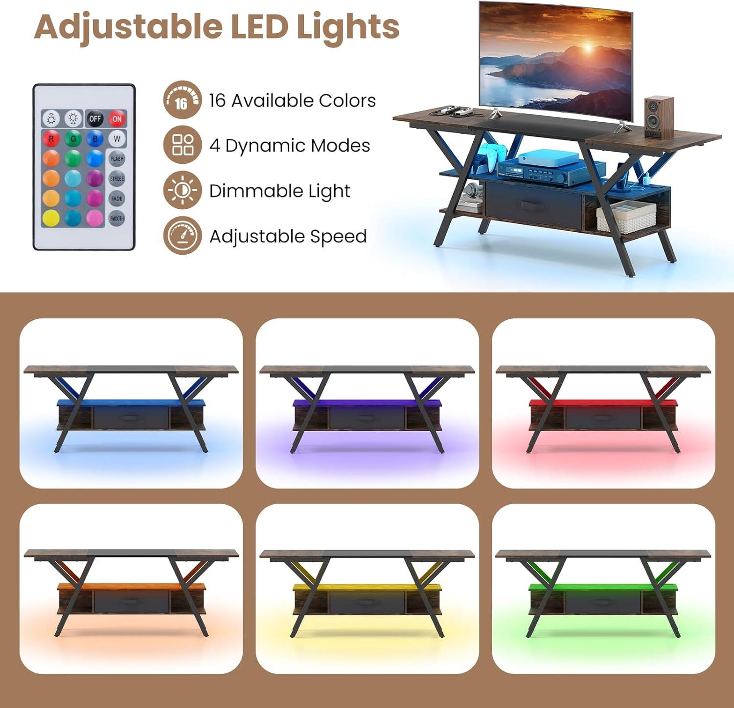 Light-Up Centerpiece: The LED entertainment center delivers 16 vibrant colors and 4 dynamic modes that you can dim or speed-up with the included remote for a totally personalized light show. Whether you’re binge-watching or battling online, the ambient light makes it the focal point of your space.