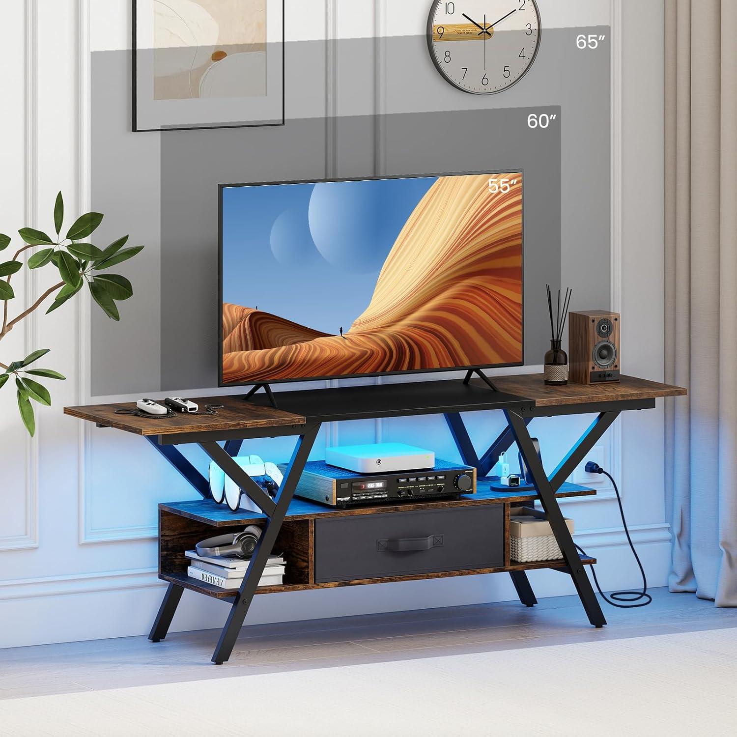 3-Tier Storage: The 55” TV console pairs a roomy tabletop (holds up to 65” screens) with 2 open tiers and a removable folding fabric drawer, giving you flexible space for consoles, games and decorations. The open shelf design ensures easy access and convenient cable management.