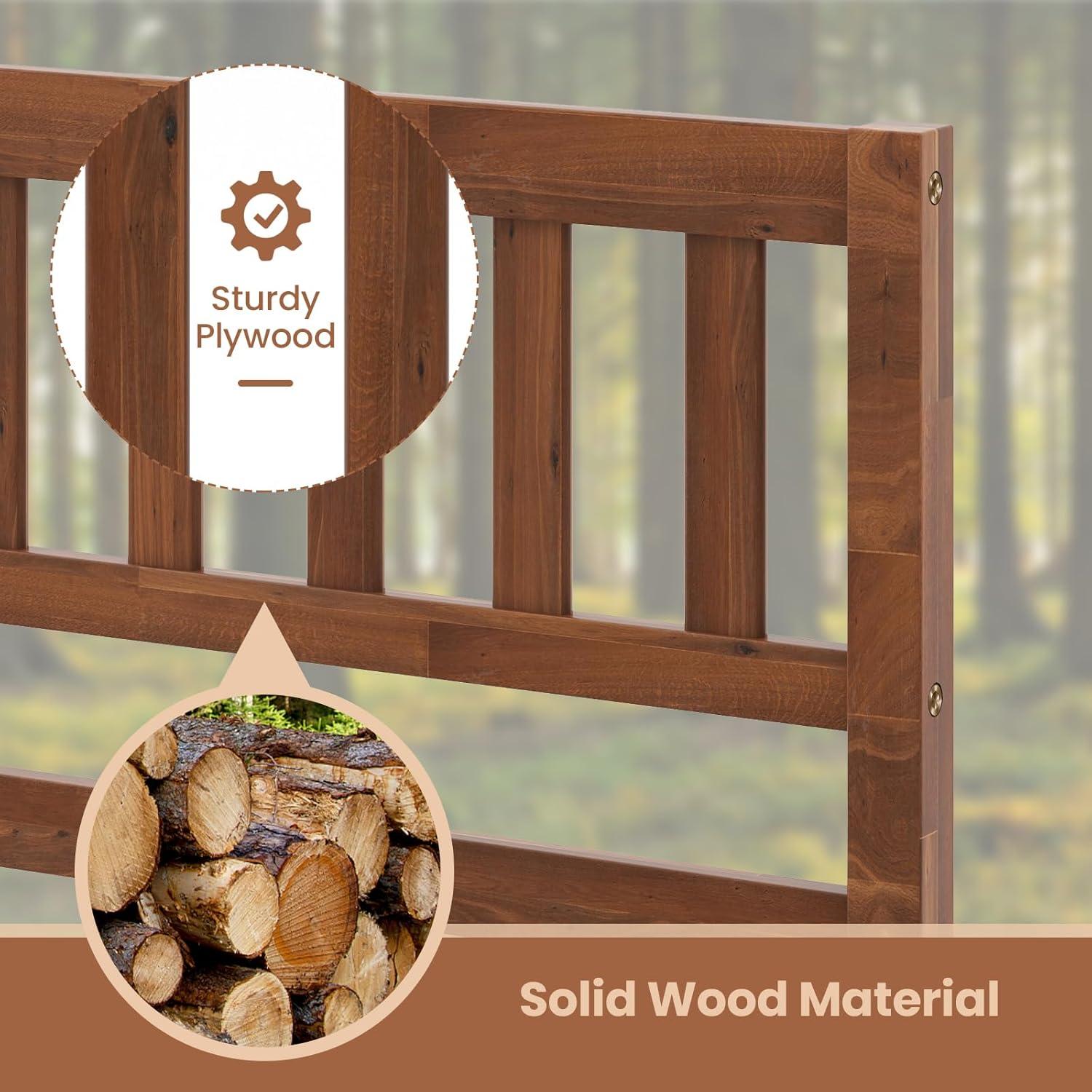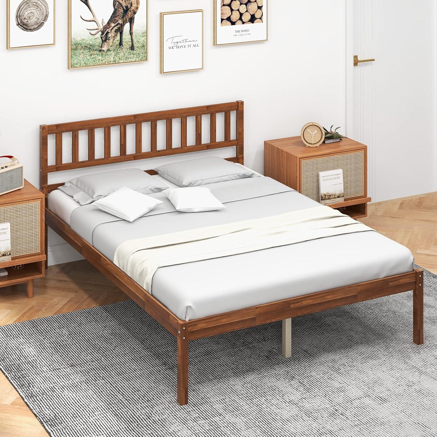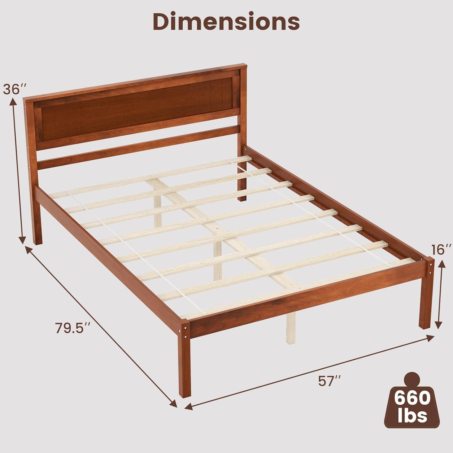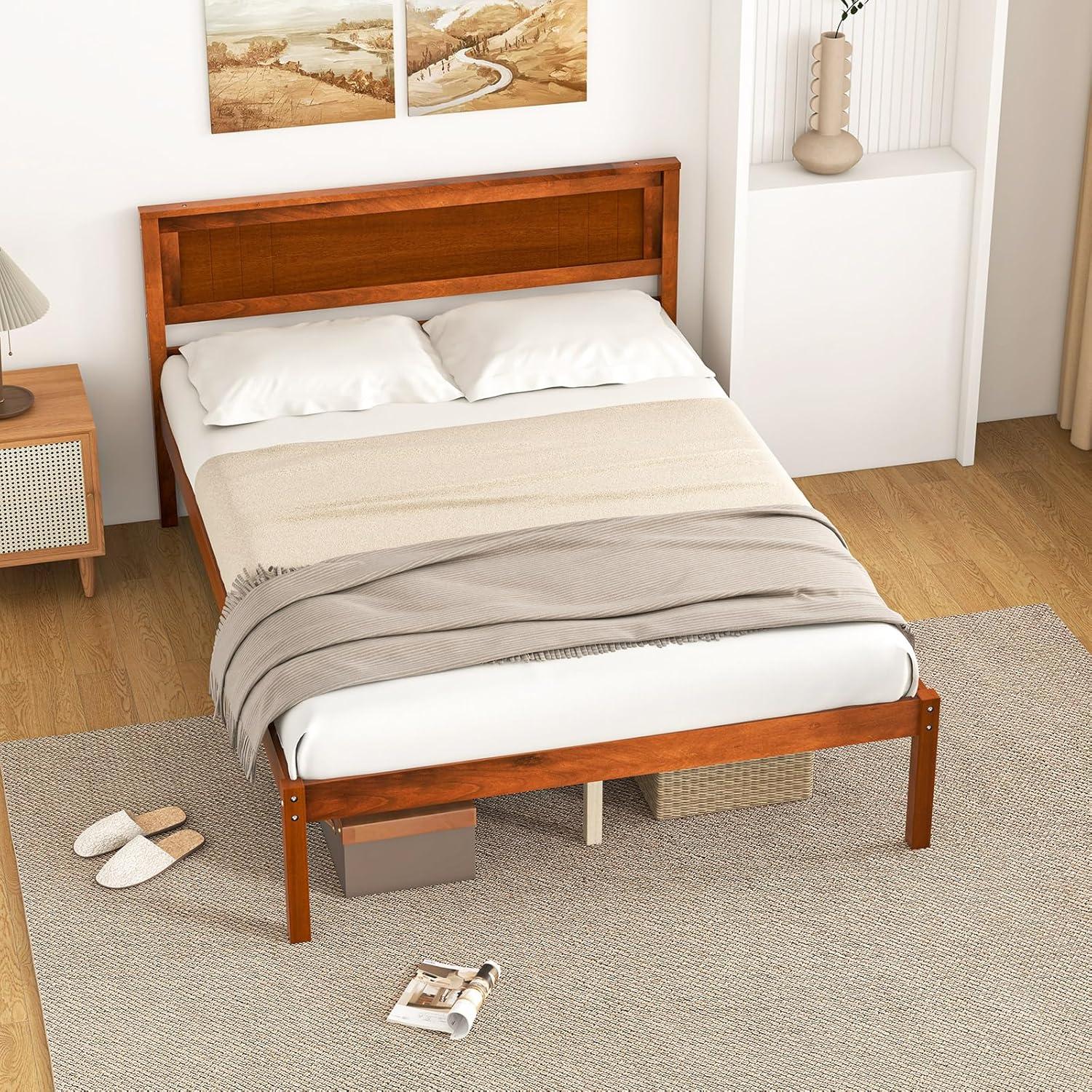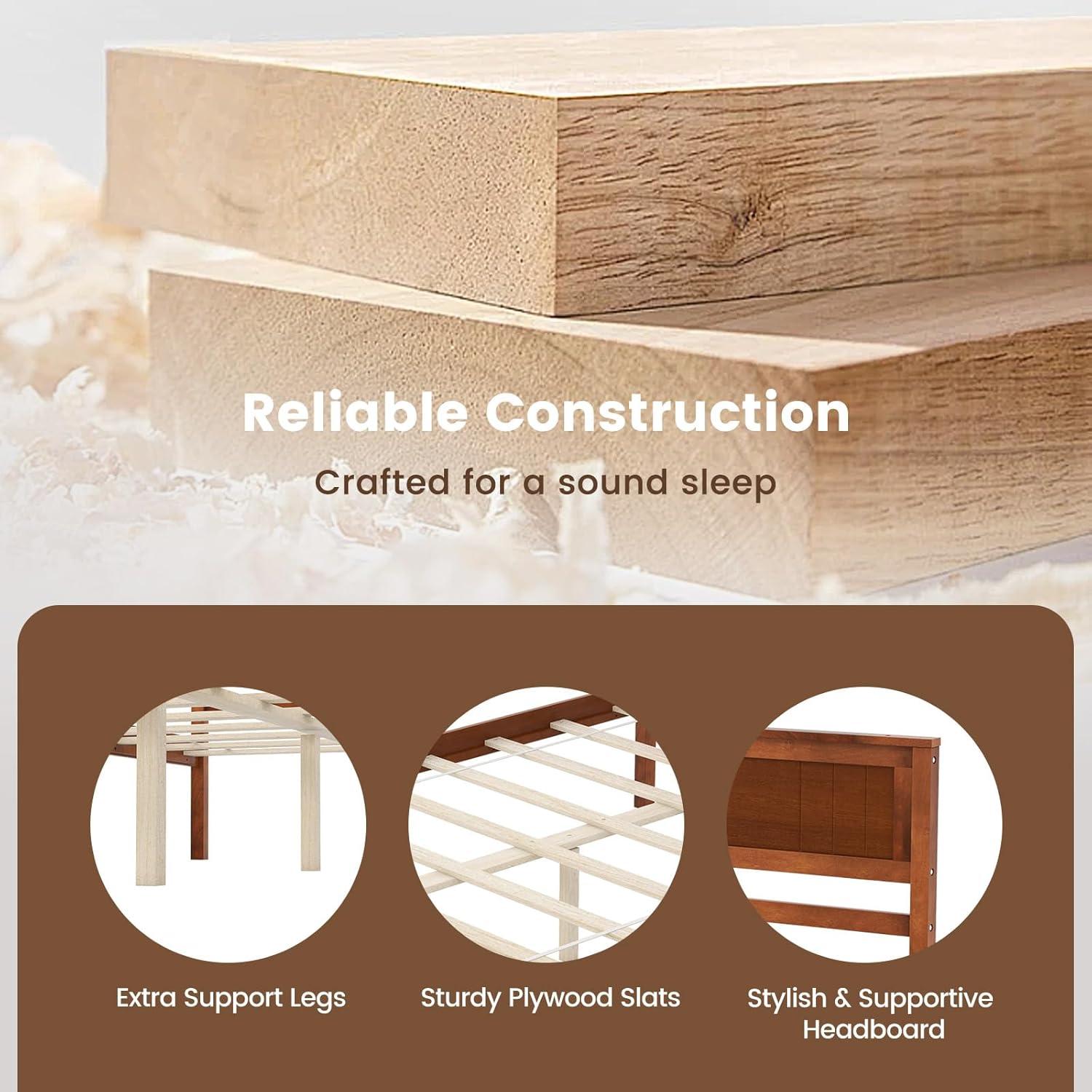 Giantex Twin Bed Frames with Headboard, Solid Wood Platform Bed with Wood Slat Support, Single Bed with 16" Under Bed Storage, Twin Bed Frames for Kids Adults Guests, Easy Assembly, Walnut(Full)