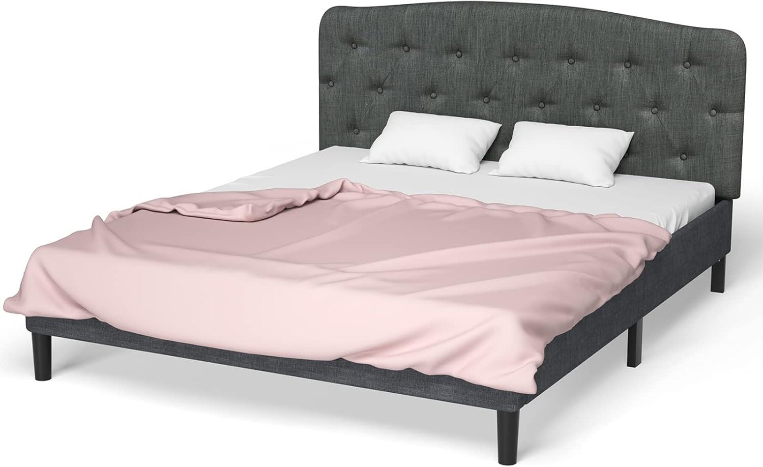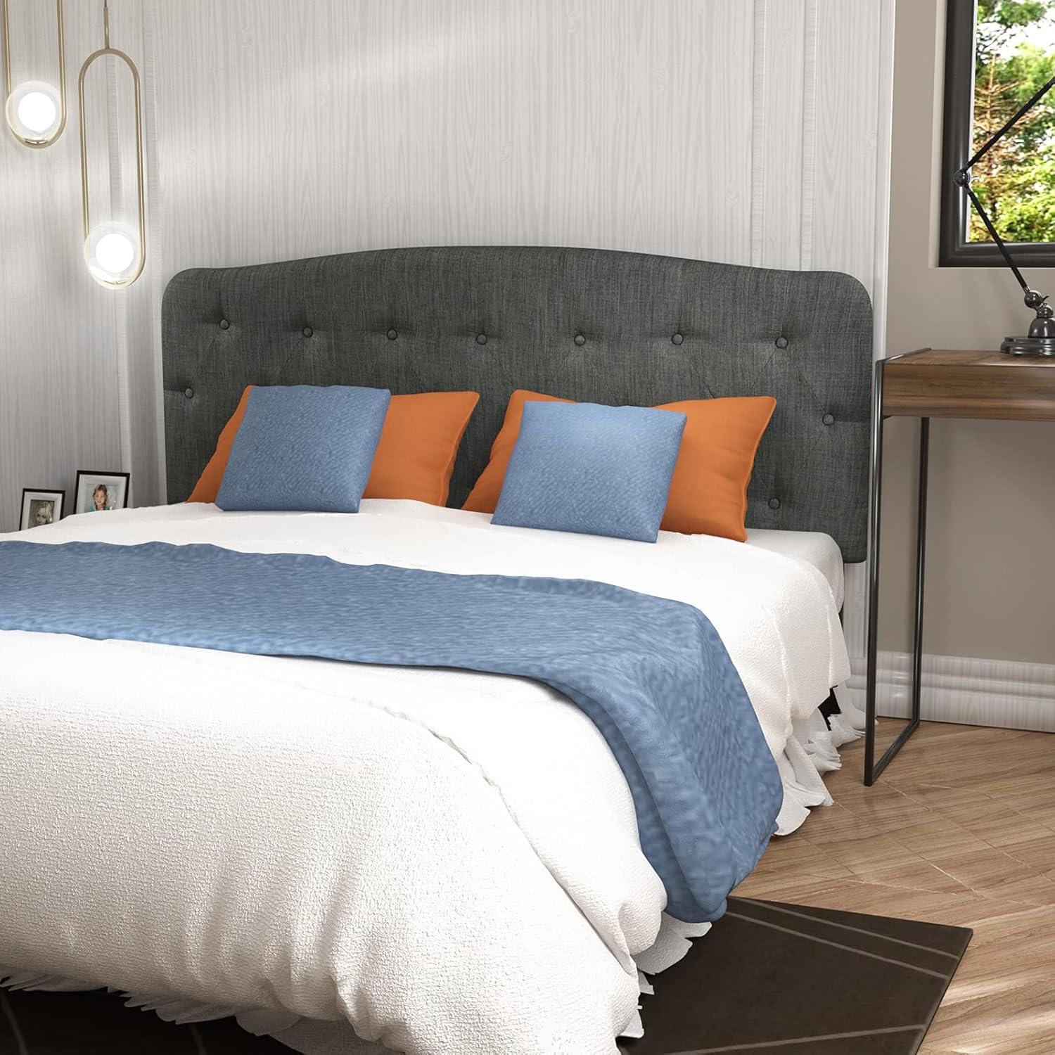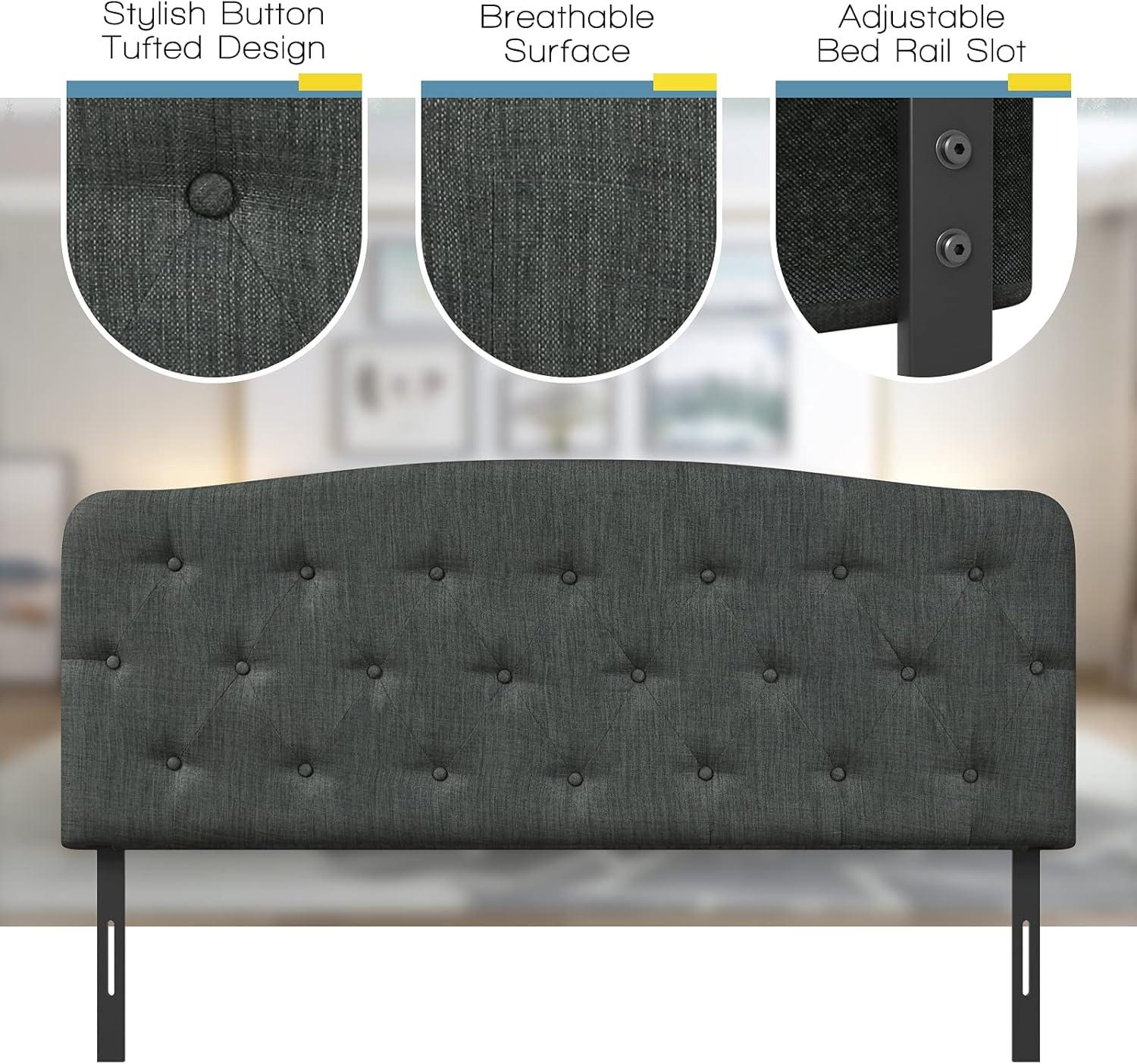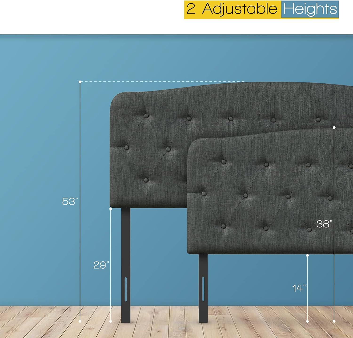 Giantex Upholstered Headboard, Button Tufted Headboard, Adjustable Height from 38’’ to 53’’ Platform, Full Size, Easy Assembly, Modern Fabric Furniture for Bedroom, Dark Grey