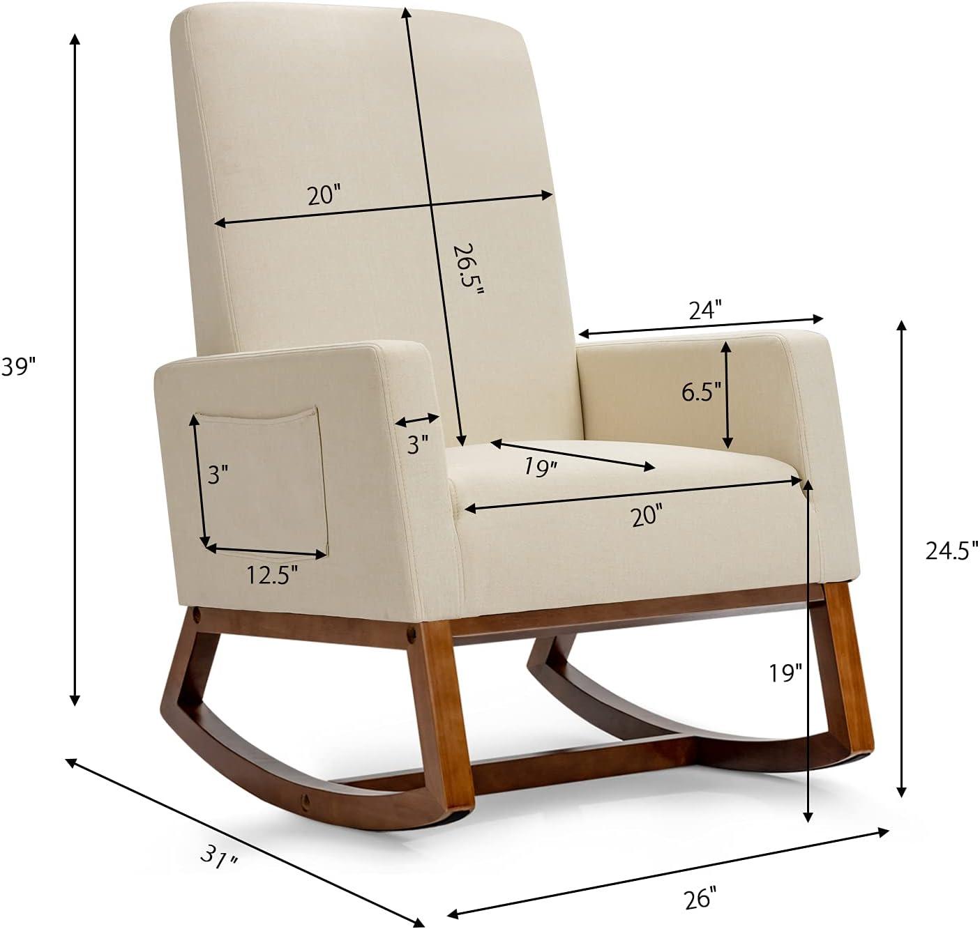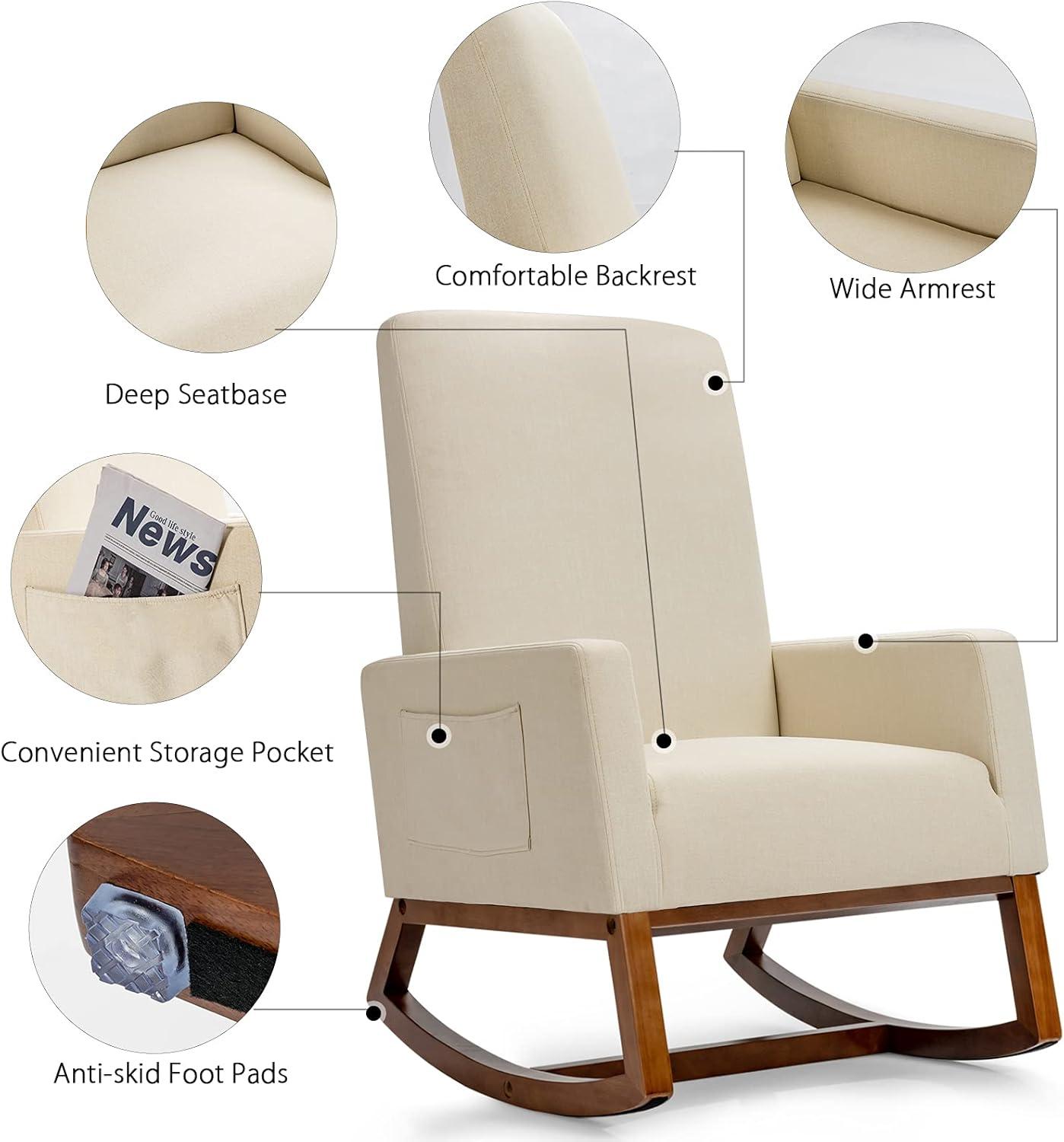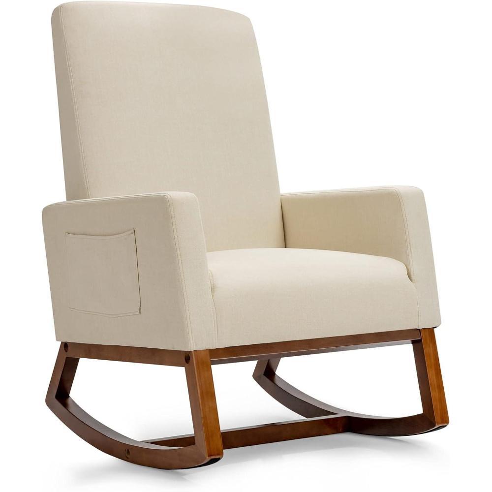 Soothing motions and overstuffed seat cushion have you nurse and bond with your baby in ultimate leisure, while the solid rubber wood base confidently supports your weight up to 330 lbs. It also comes with wide armrests and high backrest to elevate the comfortable level. Our rocking chair has a clean, contemporary design that brings the perfect blend of classic style and modern tendency, ideally matching your living room, bedroom and office. You will be pleased to find out there is a convenient side pocket for extra storage.