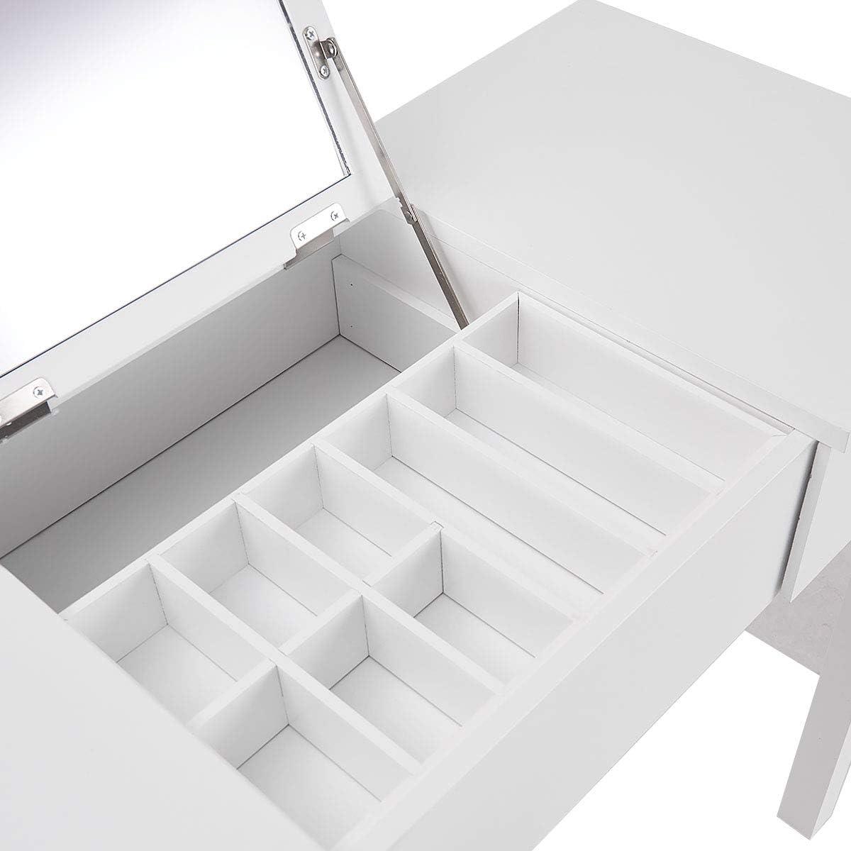 imageGiantex Vanity Set with Flip Top Mirror and Cushioned Stool Makeup Dressing Table Writing Desk with 2 Drawers ampamp 3 Removable Organizers Makeup Table Set Easy Assembly WhiteWhite