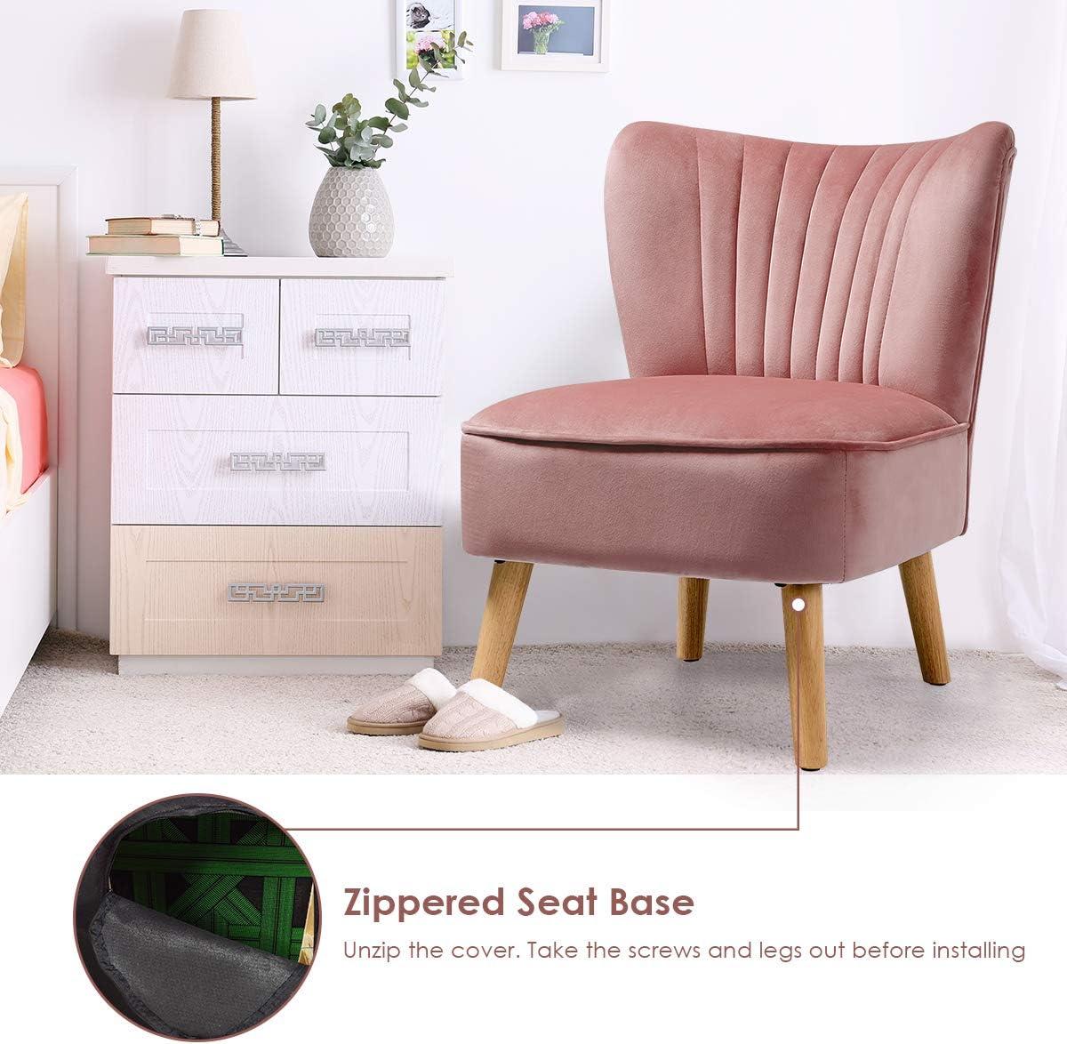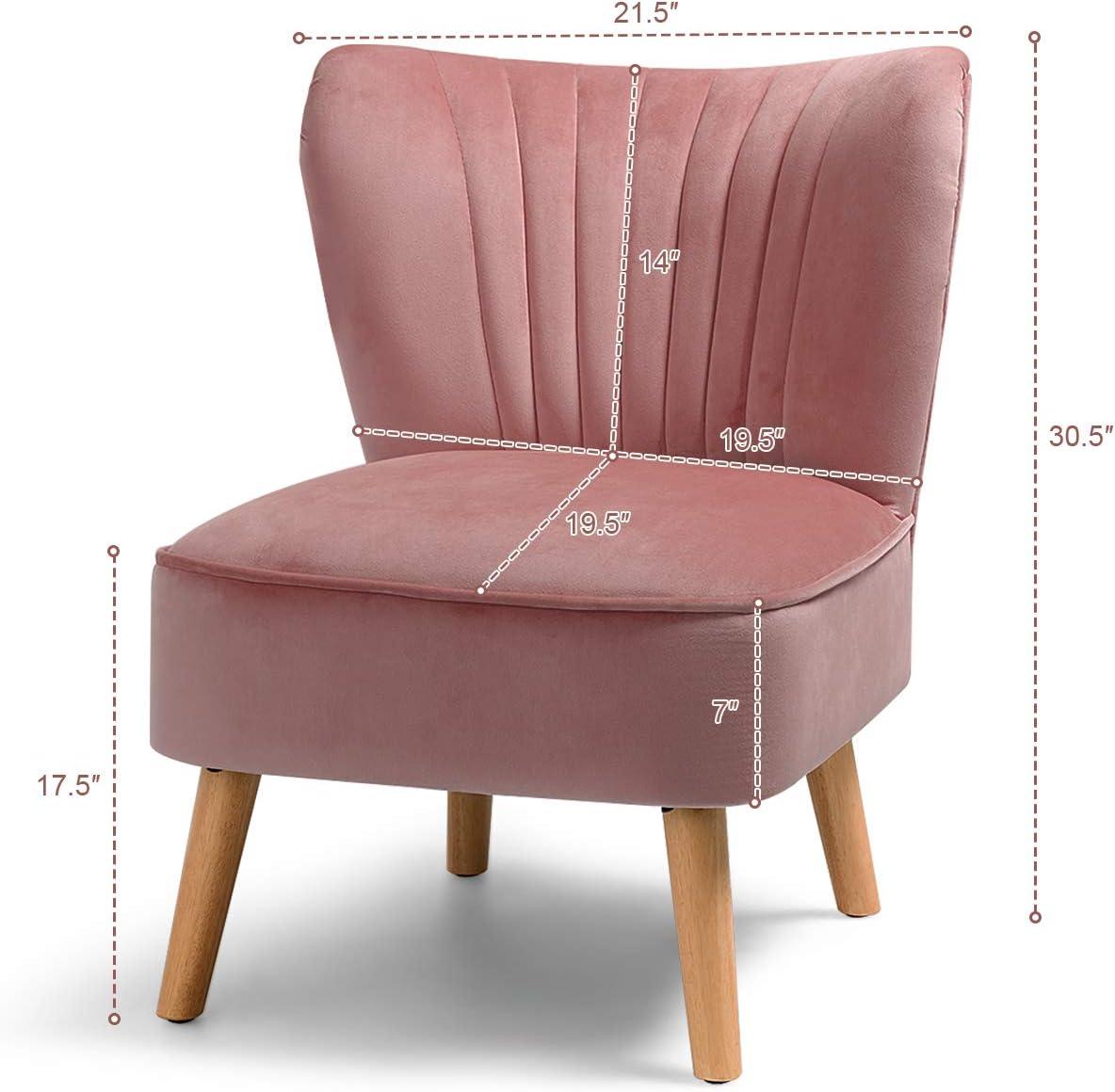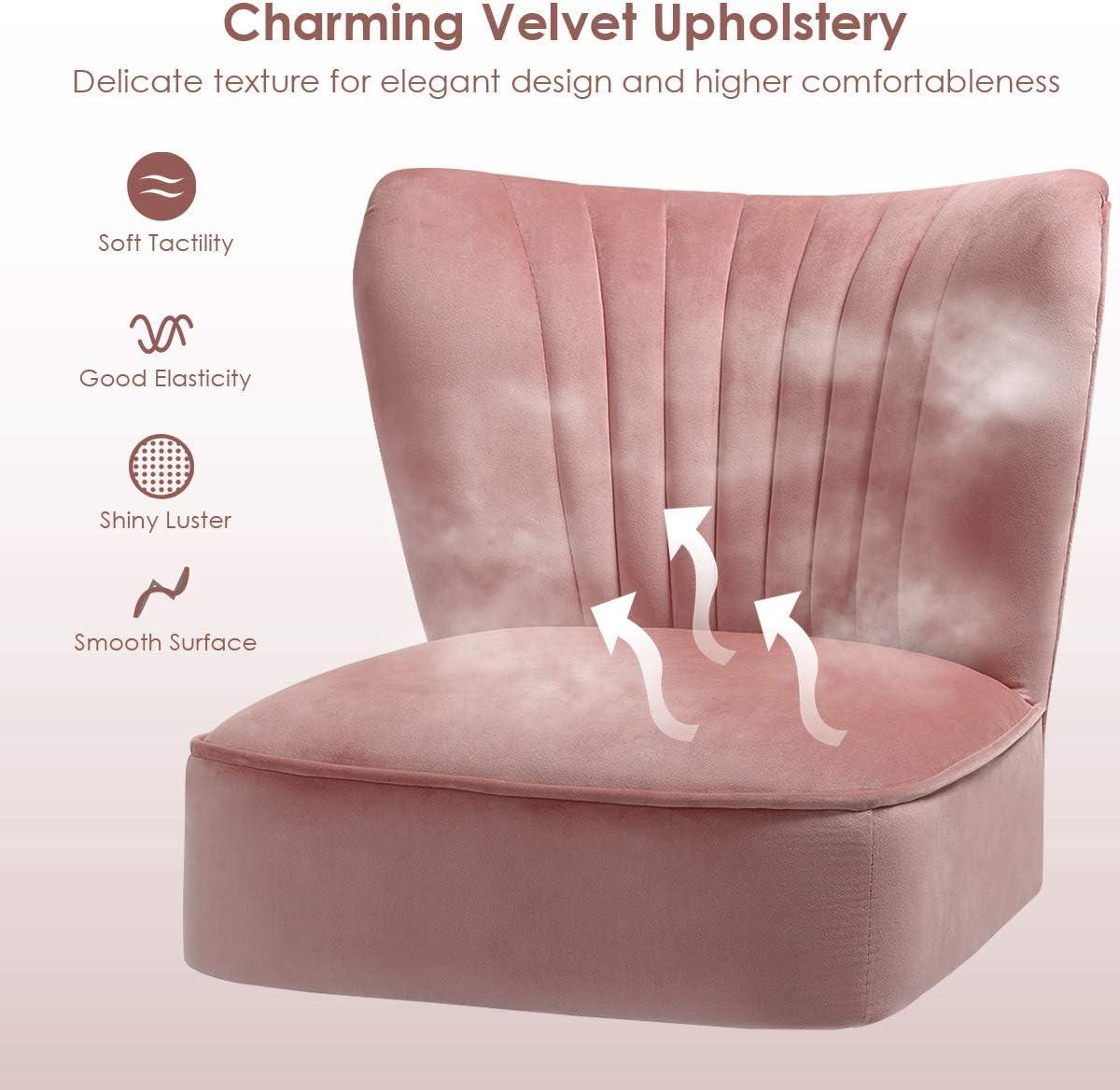 Giantex Velvet Accent Chair, Upholstered Modern Sofa Chair w/Wood Legs, Thickly Padded, Small Armless Wingback Club Chairs for Living Room Bedroom Furniture(Pink)