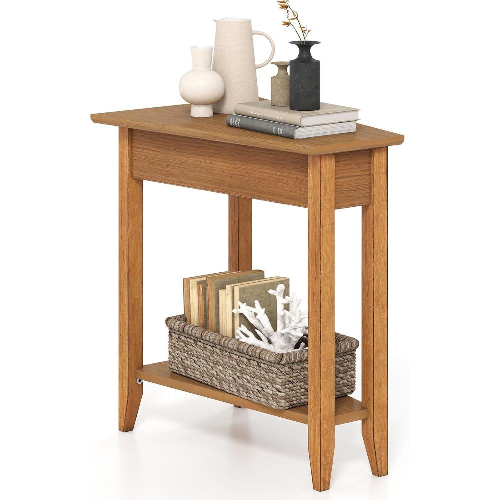 Our 2-tier end table is a perfect addition that combines storage, decoration and display. Sleek design and irregular shape add a touch of sophistication, making it a perfect fit for contemporary and traditional decor. With wide tabletop and lower shelf, the side table is flexible for you to store daily items in different sections. Moreover, exquisite craftsmanship plus premium material selection makes sure it can accompany you for many years. The versatile end table is applicable to various occasions, such as living room, bedroom and office.