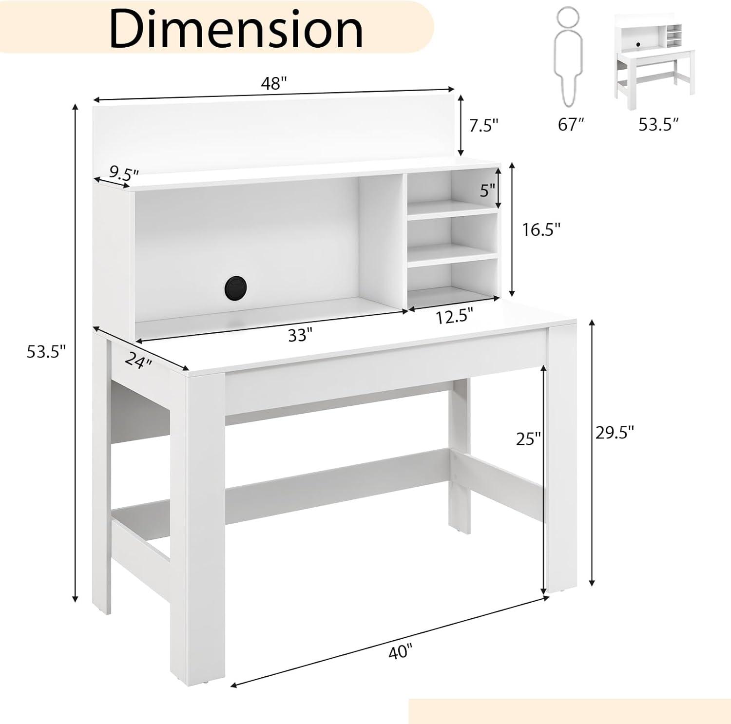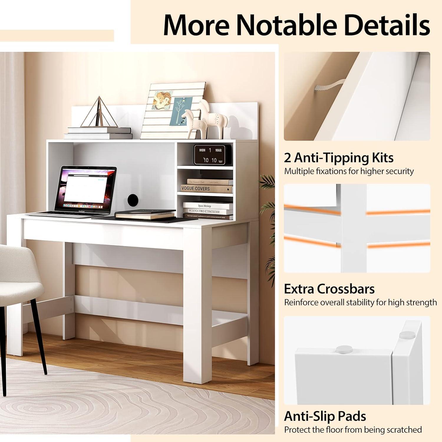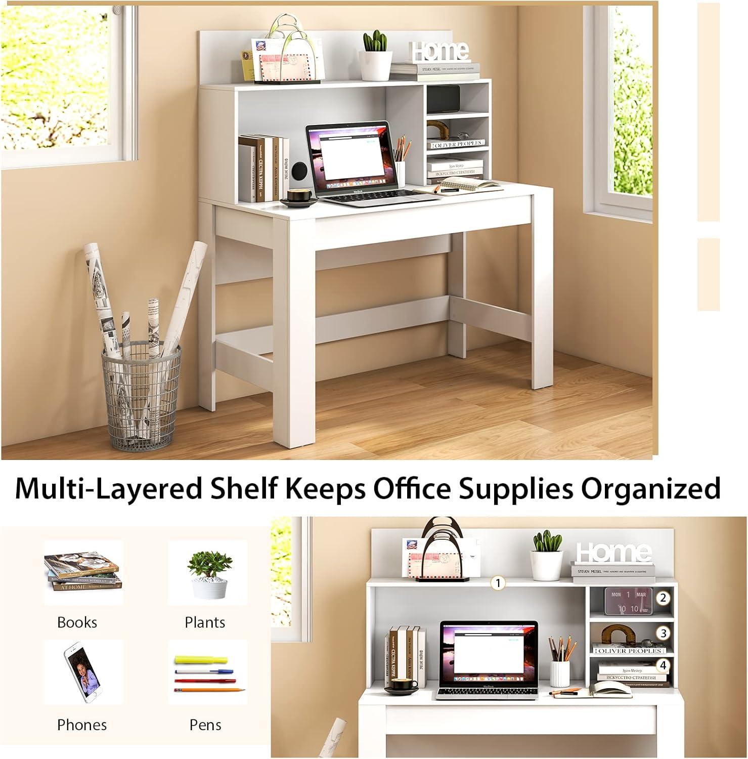 Large Open Hutch: This study writing desk also contains a roomy hutch with partitions to offer abundant storage. The shelves create separate areas to organize your files, books, plants or ornaments. Easily keep the desktop neat and organized while making it easy to access. Plus, the back raised boards will protect your items from falling.
